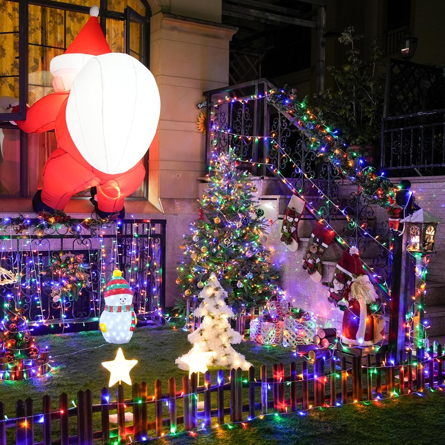 - 【Durable and Waterproof】Waterproof designed Christmas string lights perfect for both indoor and outdoor decorations. Don’t worry about using it in heavy rain and heavy snow. The strong construction makes it sturdy to provide years of high-quality lighting , not easy to break apart, and overheat after long hours of usage.Decorate your garden through the bold use of it in the whole Christmas season. Look around you, the season with Christmas lights decoration is the most romantic season of all.