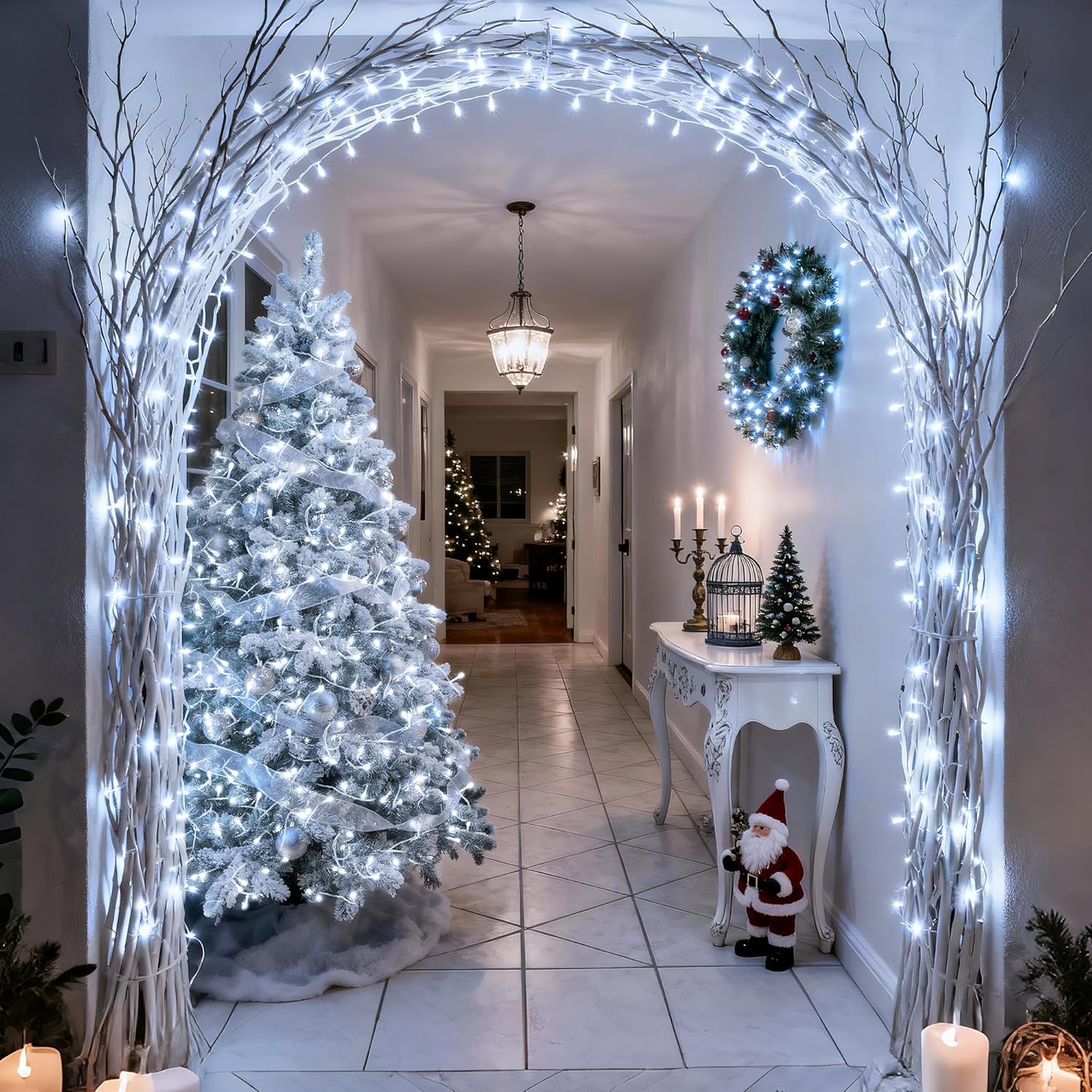 - ăSuper Long & Super Bright ăThe 168ft white Christmas lights with 600 cool white LED. You can get extra-long LED white Christmas string lights, which are enough to surround and decorated a 7.5FT Christmas Tree. Drape your tree in icy-white brilliance and watch winter itself sparkleâjust one plug turns it into a twinkling showstopper. The white Christmas lights are soft and bright, lighting to create a delighted, joyful, unique atmosphere for Christmas, birthday, party, family dinner or wedding,indoors and outdoors.