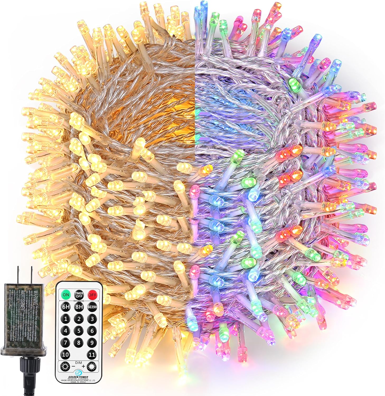 BrizLabs Christmas Lights, 180ft 500 LED Color Changing String Lights, 11 Modes Warm White & Multicolor Christmas Tree Lights with Remote, Dimmable Christmas Lights String Clear Wire for Xmas Decor