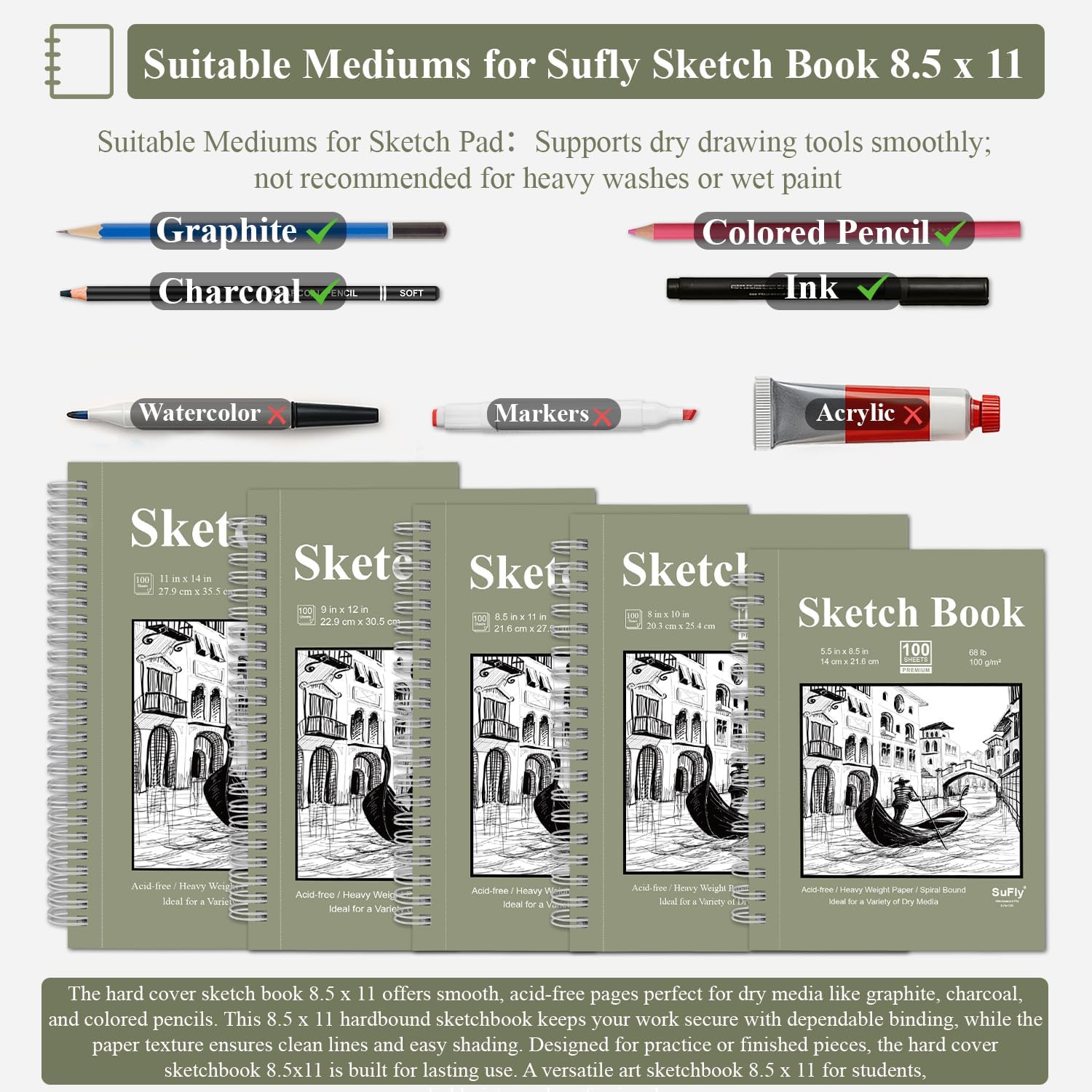 - SIDE SPIRAL-BOUND SKETCHBOOK, EASY PAGE TURNING β With a side spiral bind, all the drawing paper of this spiral sketchbook 8.5x11 is firmly held together and can be easily flipped and kept on the back. The metal spiral bind of sketchbook for drawing is sturdy and will not easily deform even after months of use, so you can feel free to draw your creations on the 8.5 x 11 sketchbook, SuFly art sketchbook can keep them long lasting.
