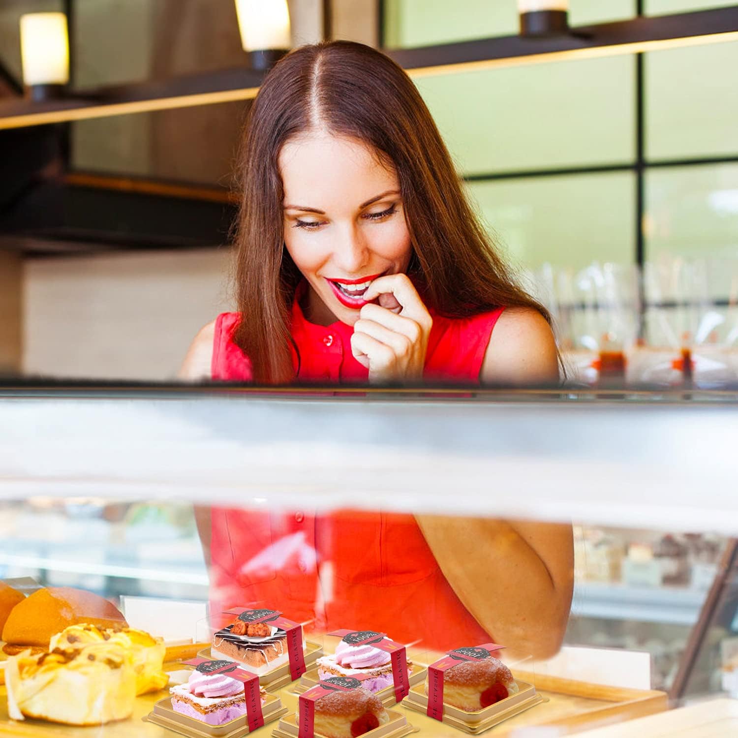 - Great Value Mini Cupcake Containers- You will receive 50 sets clear plastic mini cake boxes muffin holders and 50 pcs long sealing stickers, you can tape the stickers onto the container for securely closure, it also add a decorative touch to the mini cake box