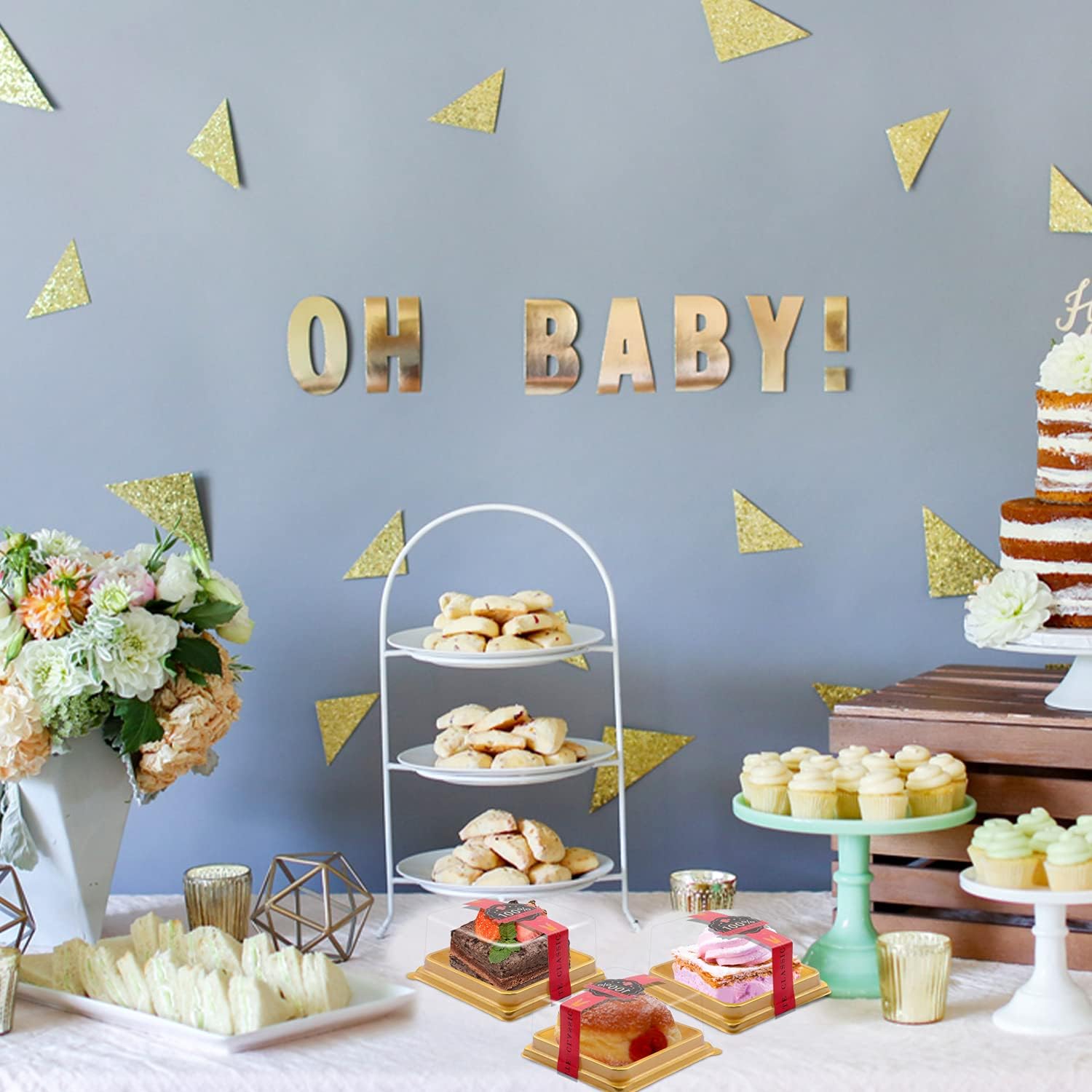 - Clear Plastic Mini Cupcake Boxes- The golden bottom and clear lid design can clearly show every exquisite detail of your baked goods, these mini cupcake containers make your desserts look more attractive and mouthwatering