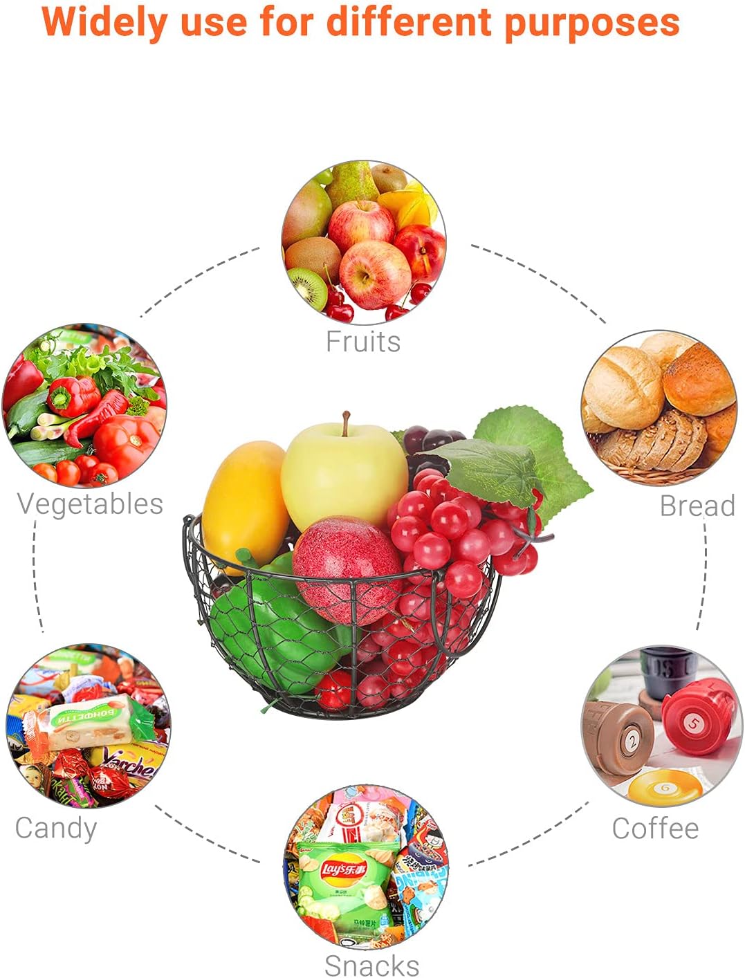 - Metal wire structure chicken wire storage basket: Sturdy metal wire structure with chicken wire maintains good airflow to keep fruits fresh