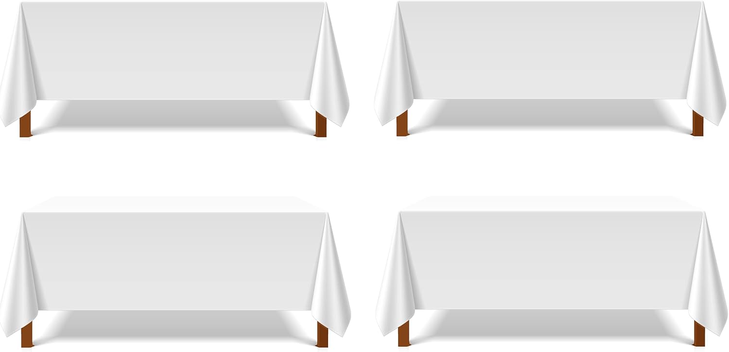Pomp Pure White 90" x 156" Poplin Polyester Tablecloth (4 Pack) | Wrinkle + Stain Resistant Easy Care Premium Fabric | Fits 8FT Rectangle Table