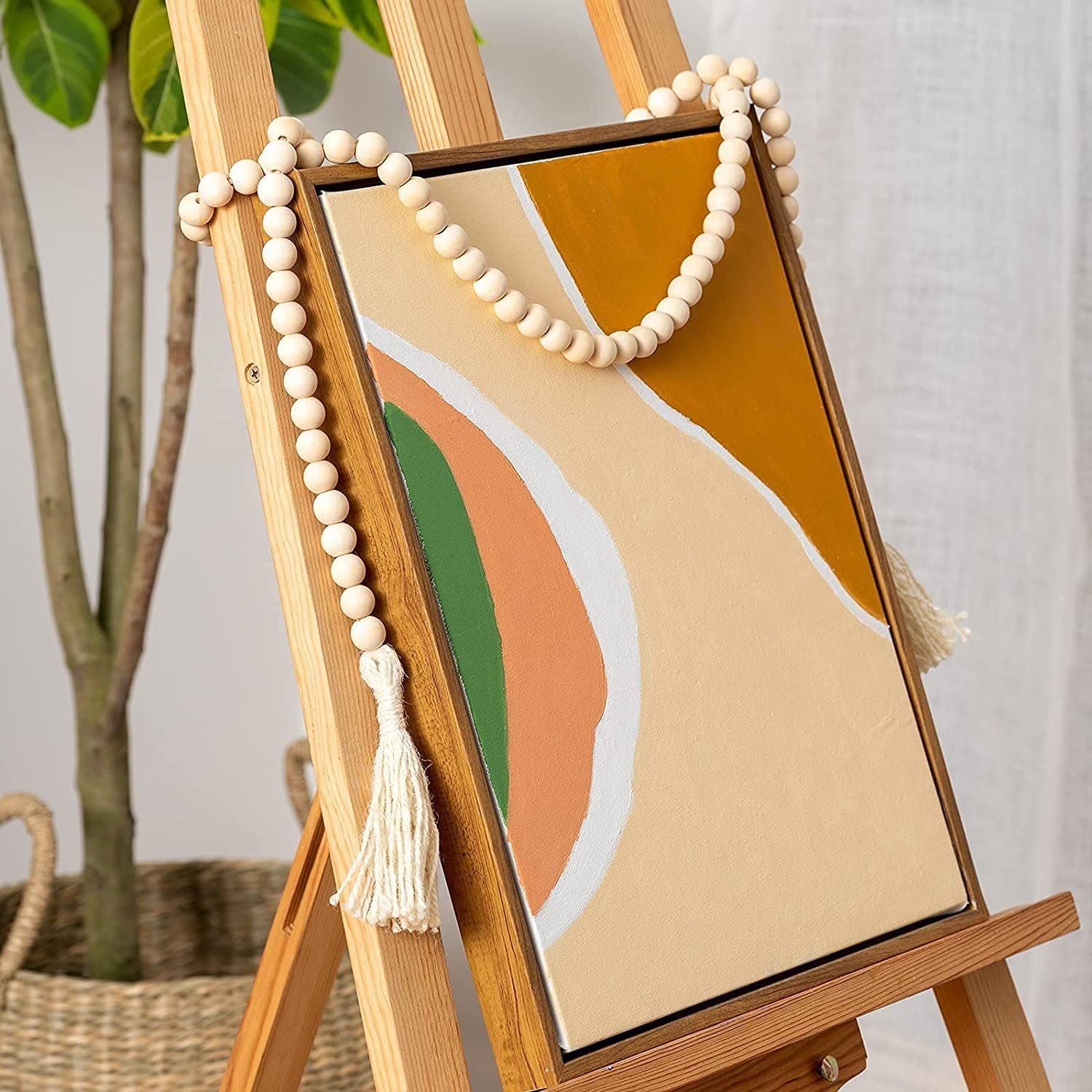 DECORKEY Wooden Beads, 58 Inch Farmhouse Wood Beads Garland for Boho Decor with Tassels, Rustic Country Decor for Coffee Table, Home, Living Room, Bedroom