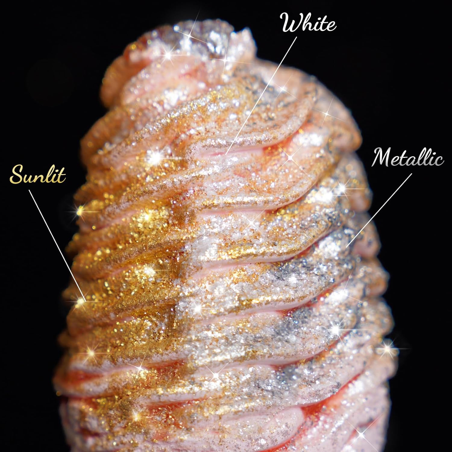 - 🌟【Safe & Non-Toxic】Our multi-purpose glitter contains mica-based pigments and undergoes a specific manufacturing process to make the minerals safe and edible. It’s a safe food coloring without added sugar or flavors, and ingredients in the edible glimmer powder include mica, titanium dioxide and iron trioxide, which are color additives specifically approved for food.