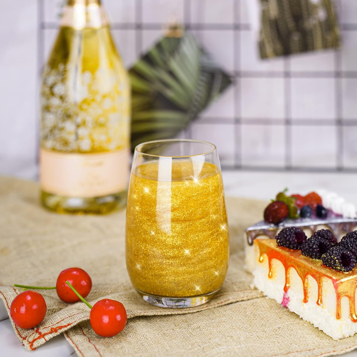 - 🌟【Edible Luster Dust】KOSHER, HALAL, HACCP and Vegan Certified. 100% edible food-grade glitter powder in 10 g/0.35 oz size to meet your needs in breweries, distilleries, restaurants and food service industry. This vibrant, edible luster dust glitter can elevate cakes, cupcakes, cookies, wine, cocktails, champagne, and other baked goods by giving them a stunning glimmer. It is the perfect complement to cocktail drinks, adding unlimited sparkle, glitz and fun to your drink and evening out!