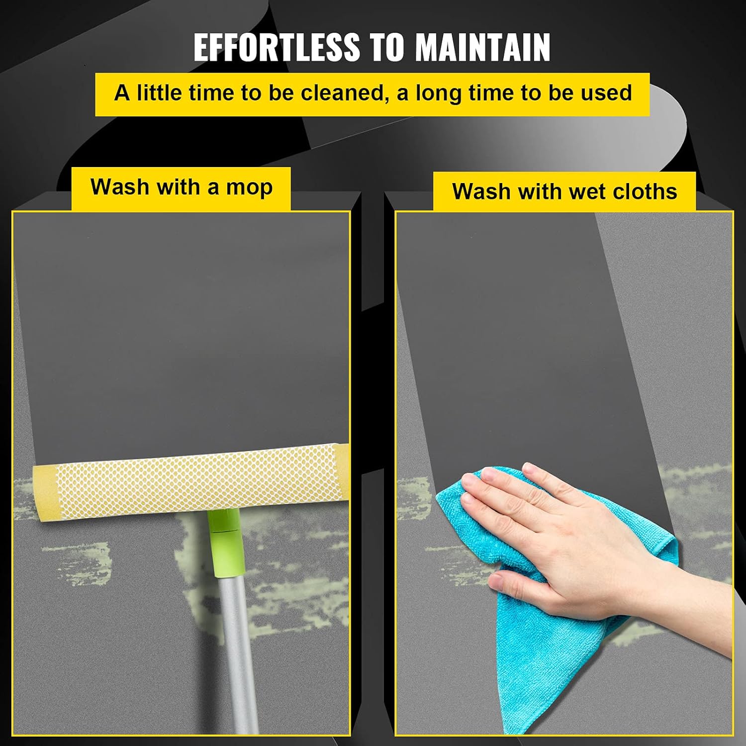 - Labor-saving Cleaning: The portable dance floor is easy to clean and maintain. All work will be done instantly by sweeping any loose debris or dirt, cleaning stains with a damp mop, and gently scrubbing away scuffs. Hence, it can be used for a long time without being replaced.
