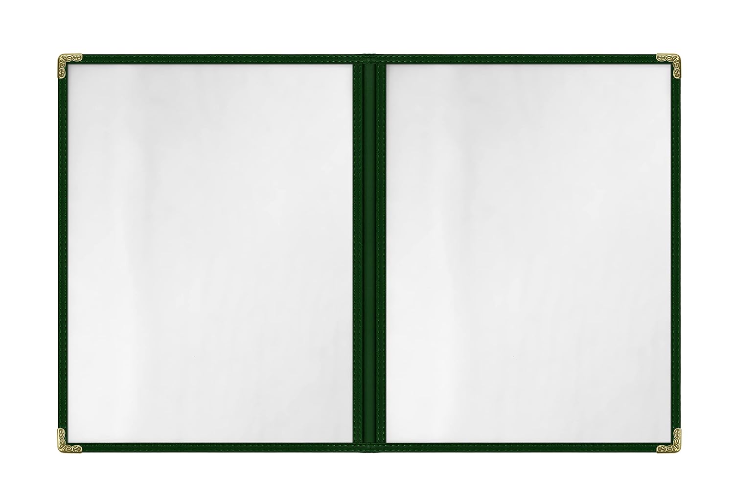 Goodsmart Restaurant Menu Covers - 25 Pack Green2-Page/4-View 8.5" x 11", Side-Loading Vinyl Menu Holders, Clear Sleeves, Double-Stitched Edge, Leather-Style Café Menu Covers with Gold Corners