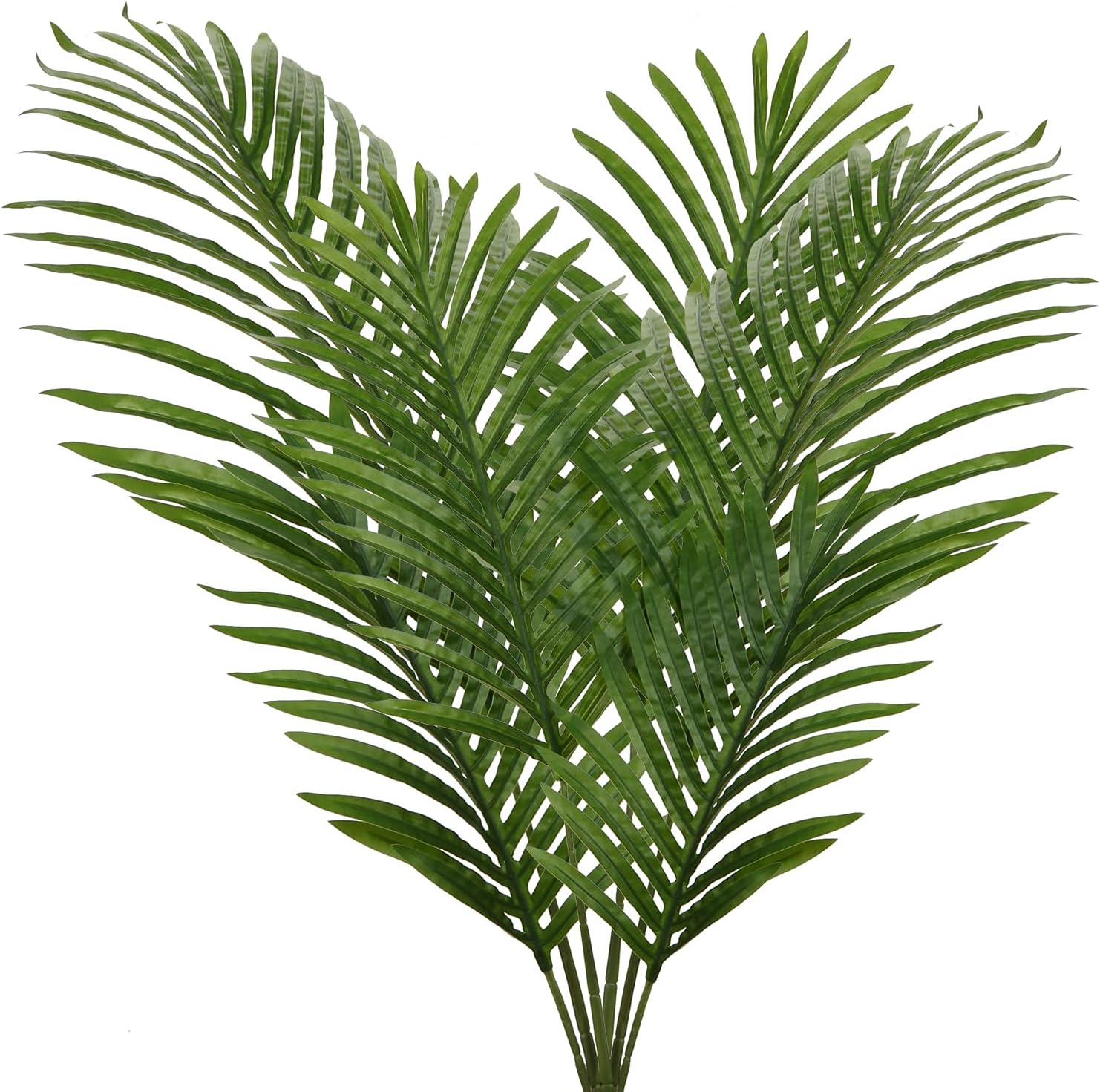 - Premium Material- Artificial palm leaf made of durable fabric, the surface of the leaves is glossy and the veins are clearly printed, Bendable palm stem to fit your vase or adjust the shape make it looks more real.