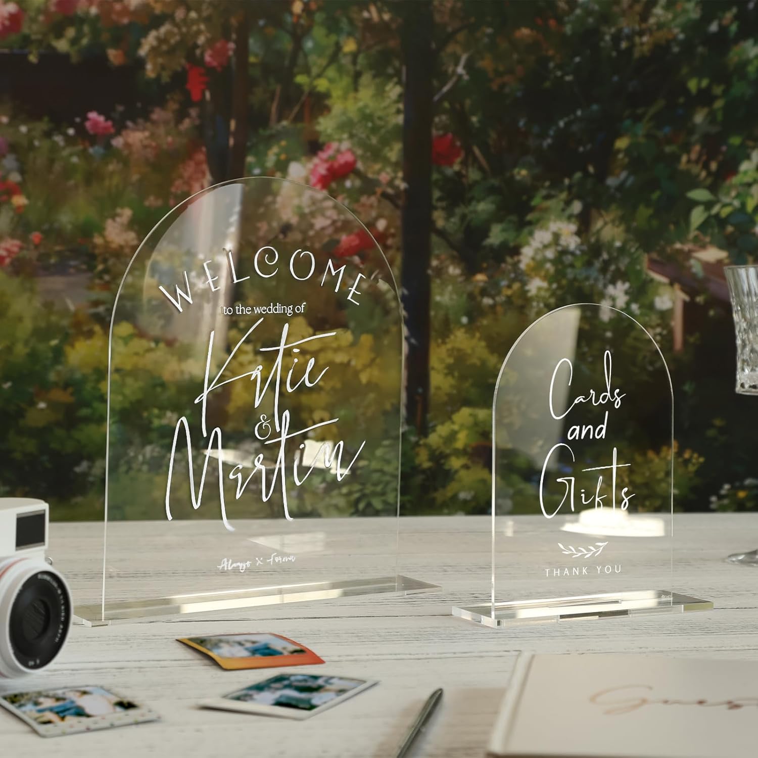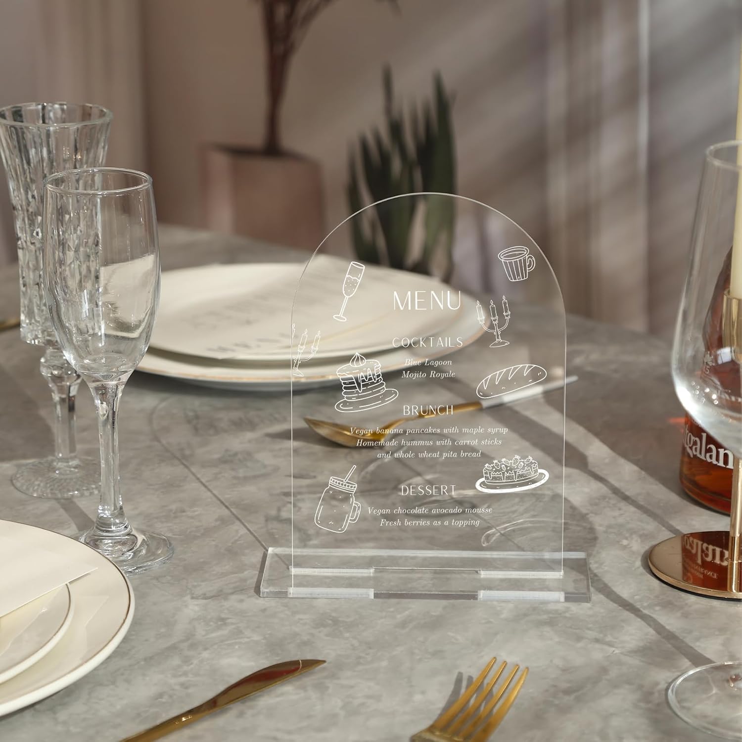 - Versatile Acrylic Signs: Elevate your wedding's chic factor with acrylic signs that can double as tabletop markers, welcome banners, card and gift indicators, bar menus, and food labels, or even as a canvas for your hand calligraphy to create personalized desk decor or heartfelt gifts for loved ones.
