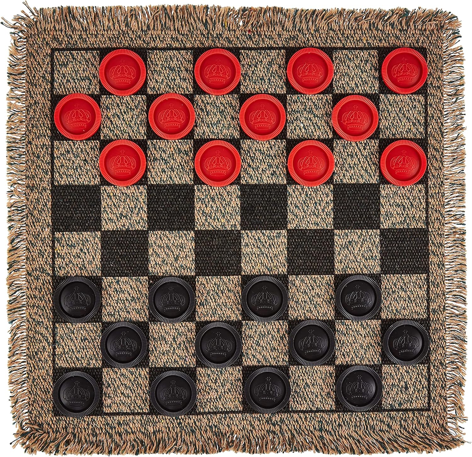 3-in-1 Mini Checkers Rug + Classic & Mega Tic Tac Toe - Portable Compact 12" x 12" Reversible Checkerboard Rug - Travel, Parties, Games on The Go, Family Board Game Night