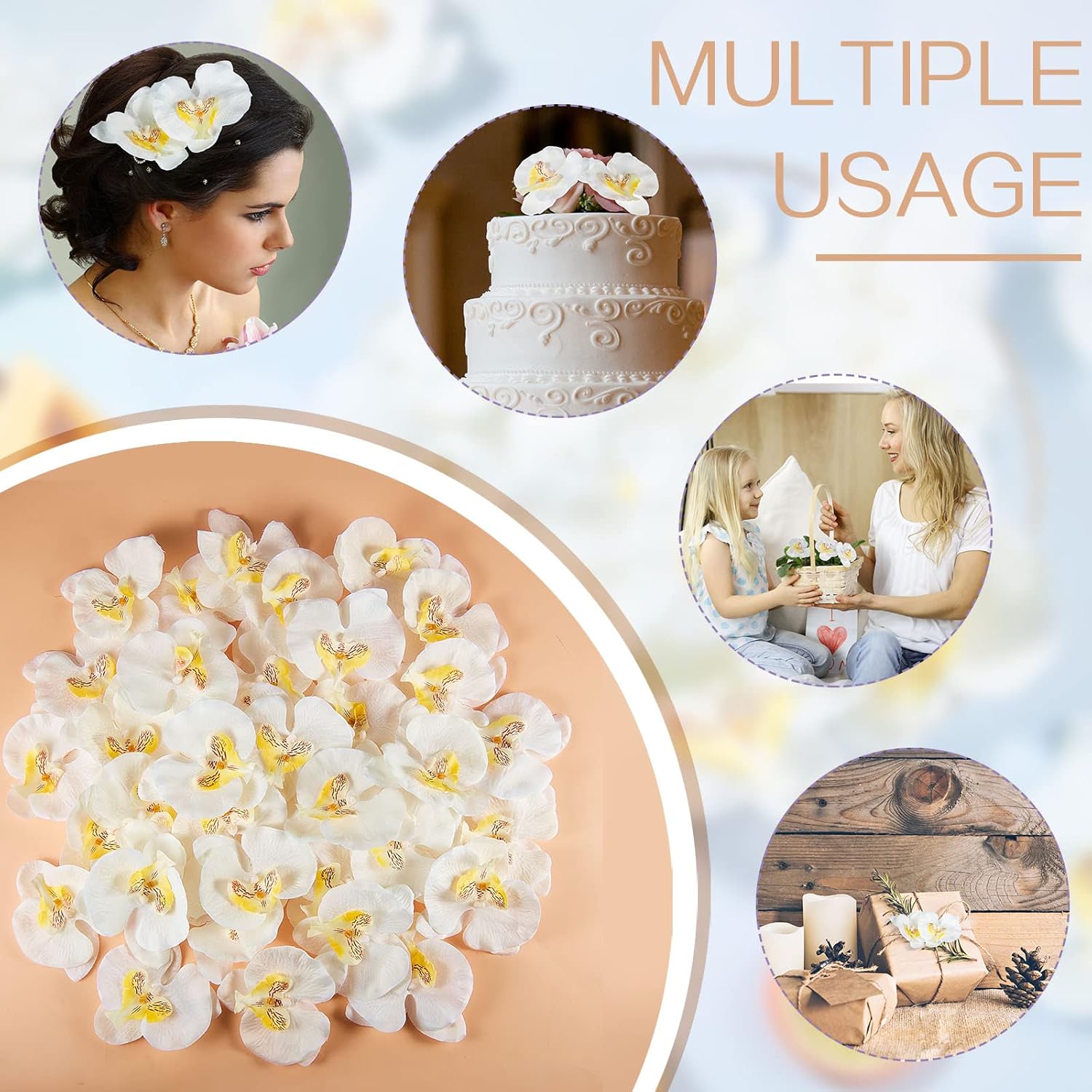 - Eye-catching appearance: faux silk orchid head flower accents fine craftsmanship and realistic shape, can be applied as real flowers for your party or wedding decoration, making your wedding or party more eye-catching, can also be applied as a beautiful headdress to decorate your look, so that you are confident and charming