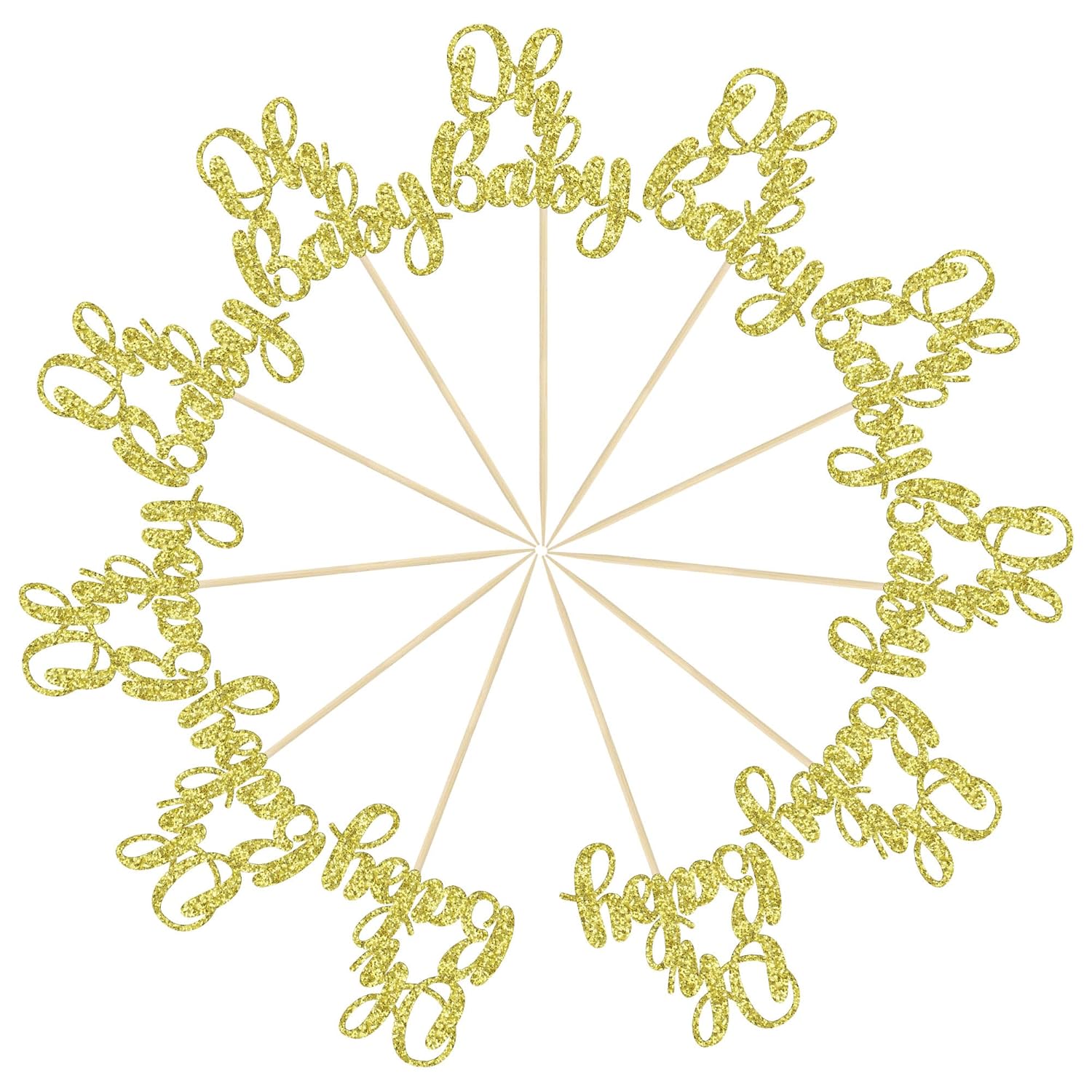 Gyufise 36 Pack Oh Baby Cupcake Toppers Glitter Baby Shower Cupcake Picks Decorations for Celebrating Baby Shower Kids Birthday Party Supplies Gold
