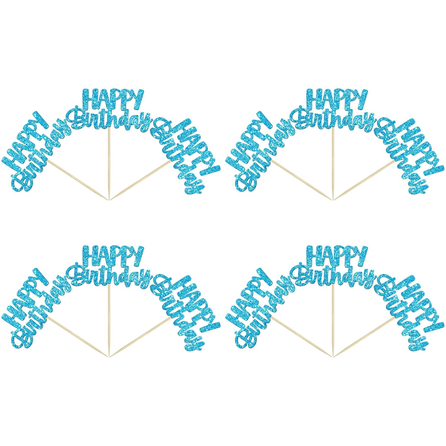 Gyufise Happy Birthday Cupcake Toppers Blue Glitter Birthday Cake Topper Picks Dessert Topper Decoration for Birthday Party Anniversary Celebration Pack of 24