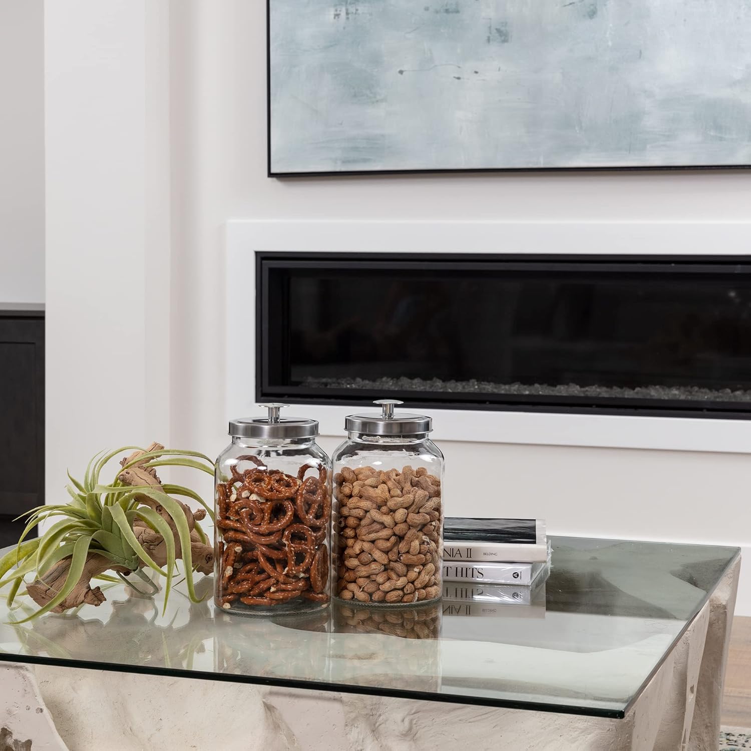 2 Large 1-Gallon Glass Canister Sets for Kitchen Counter with Stainless Steel Airtight Lids + Marker & Labels, Cookie Jar & Candy Jar for Buffet, Coffee & Flour Jars, Laundry Room Storage & Pantry