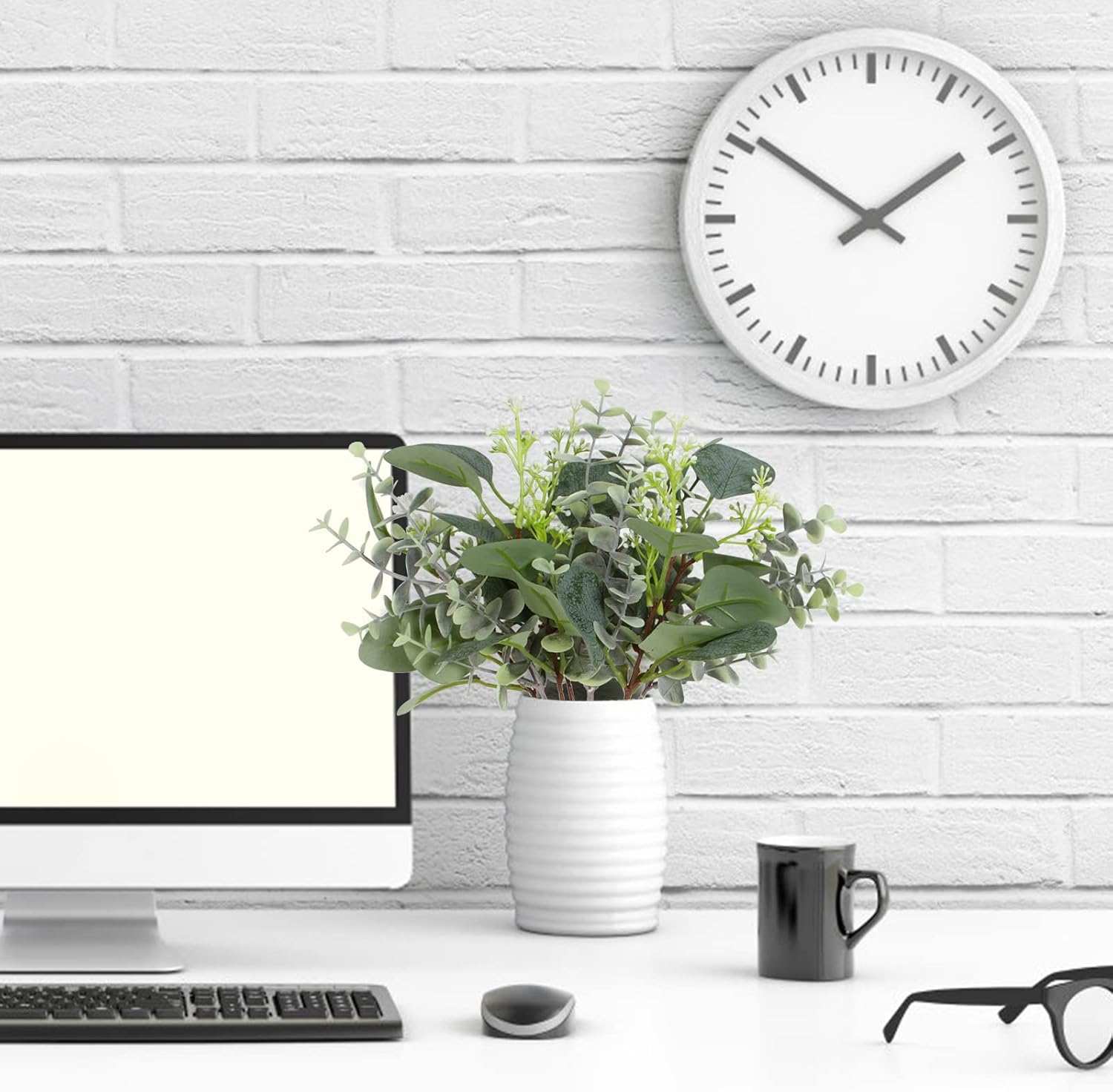 - [Size]: The artificial eucalyptus leaf stem is 11 inches (approximately 27 cm) high and 5.5 inches (approximately 14 cm) wide.