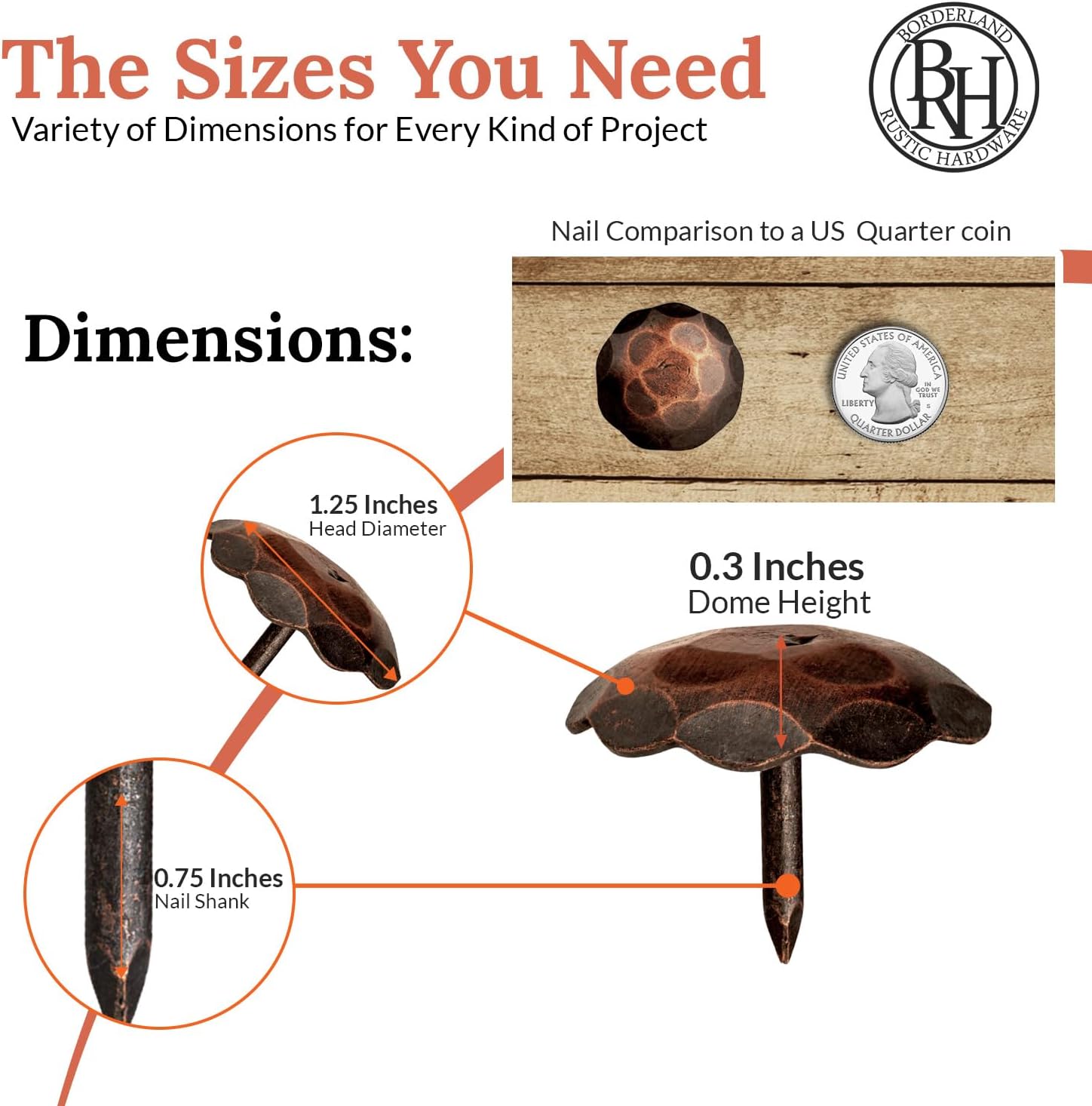 50 Pack 1.25" Round Head Iron Clavos Decorative Nails – Oil Rubbed Bronze – Handmade Rustic Round Fasteners for Farmhouse Shutters, Faux Wood, Barn Doors, Shutters, Gates – Ornamental Wood Accent