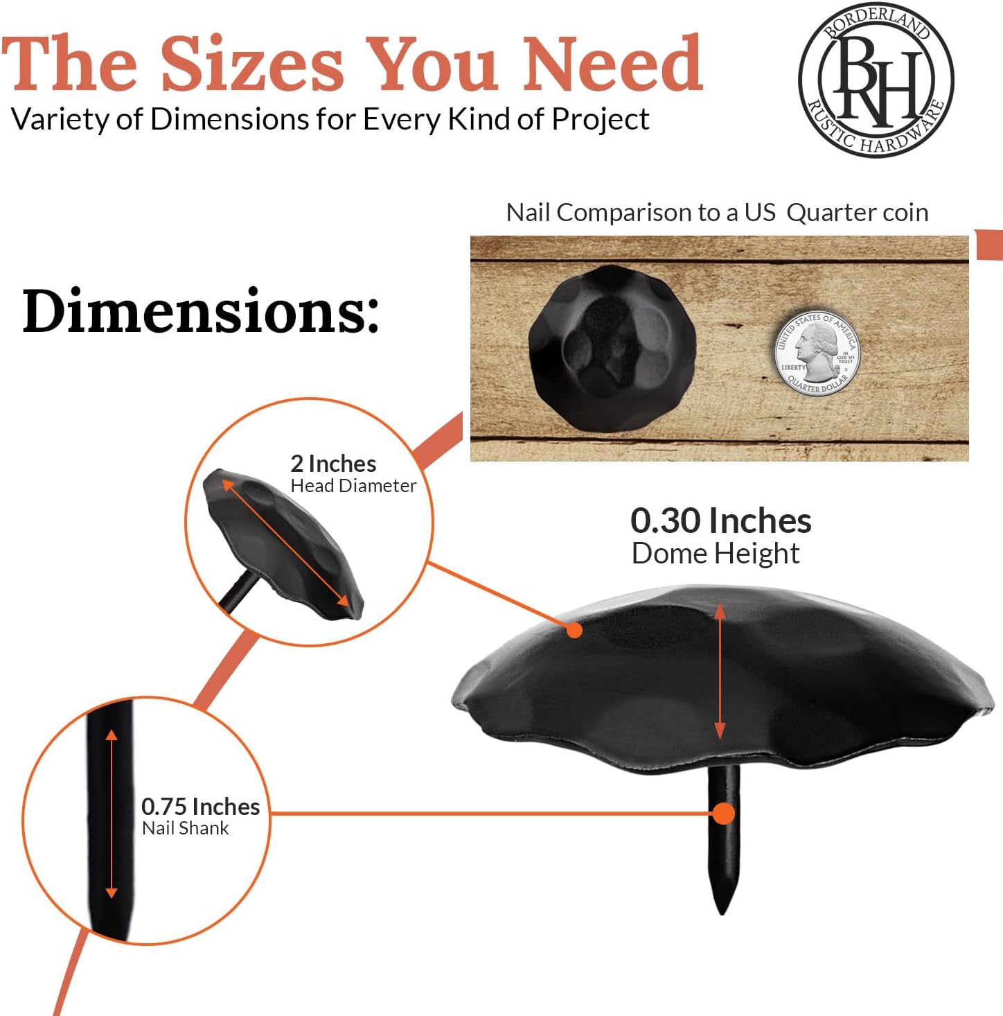 10 Pack 2" Round Head Iron Clavos Decorative Nails – Black – Handmade Rustic Round Fasteners for Farmhouse Shutters, Faux Wood Beams, Barn Doors, Shutters, Gates – Ornamental Wood Accent