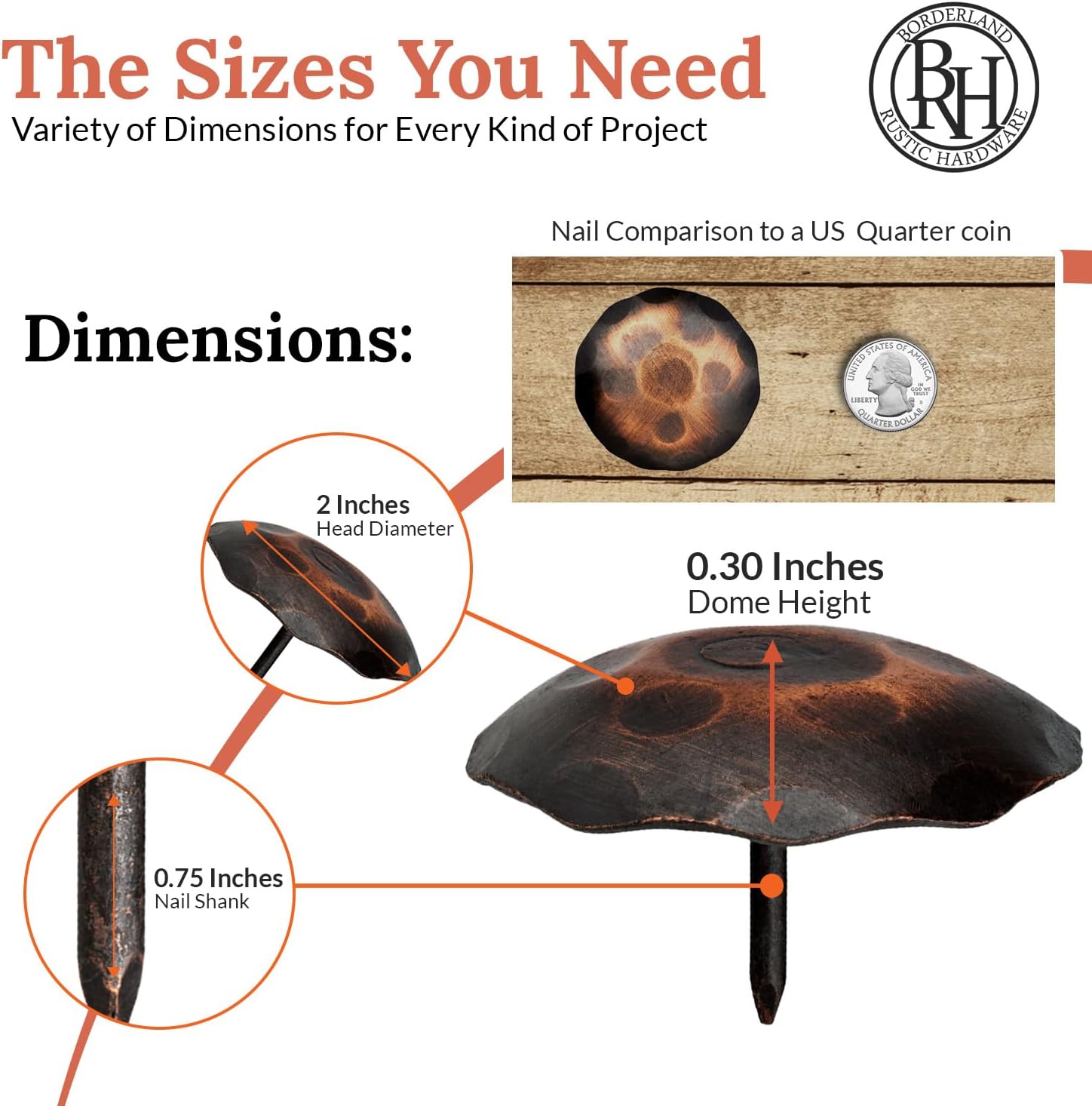 50 Pack 2" Round Head Iron Clavos Decorative Nails – Oil Rubbed Bronze – Handmade Rustic Round Fasteners for Farmhouse Shutters, Faux Wood, Barn Doors, Shutters, Gates – Ornamental Wood Accent