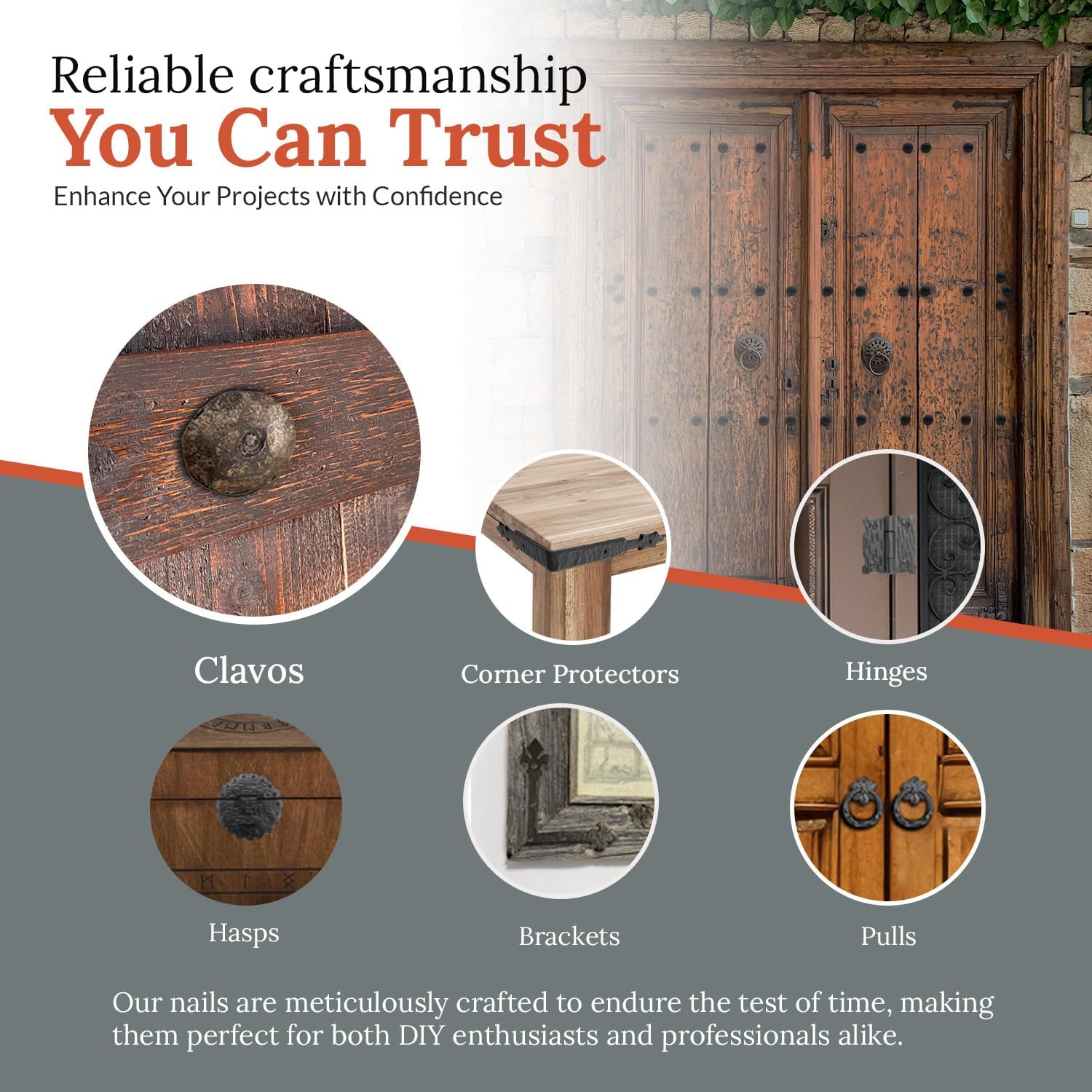 - PREMIUM FABRICATION: Each iron nail is meticulously MIG welded by hand to ensure maximum strength and longevity. Unlike competitors who use less durable spot welding, our nails are built to withstand the elements, making them ideal for exterior shutters, faux wood beams, and other applications requiring robust and reliable decorative hardware.