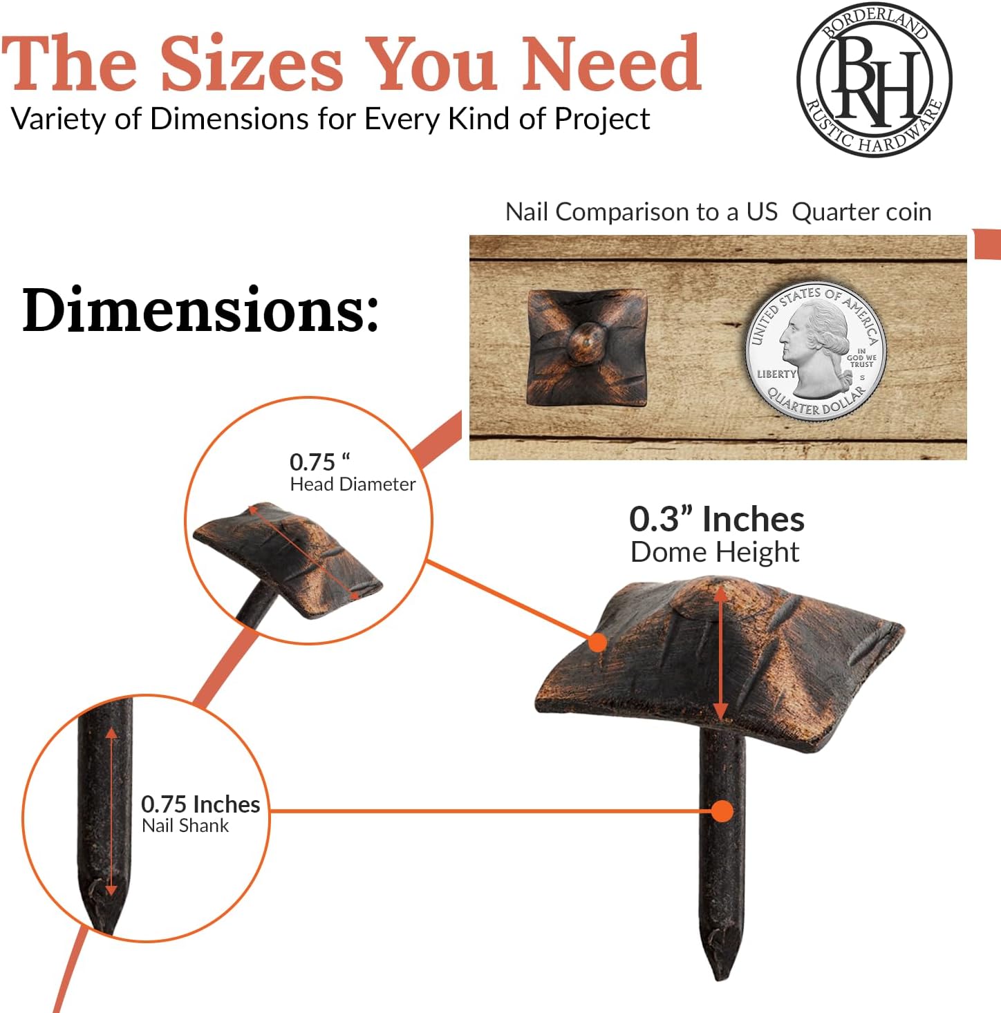 100 Pack 0.75" Square Head Iron Clavos Decorative Nails – Oil Rubbed Bronze – Handmade Rustic Square Fasteners for Farmhouse Shutters, Faux Wood, Barn Doors, and Gates – Ornamental Wood Accent