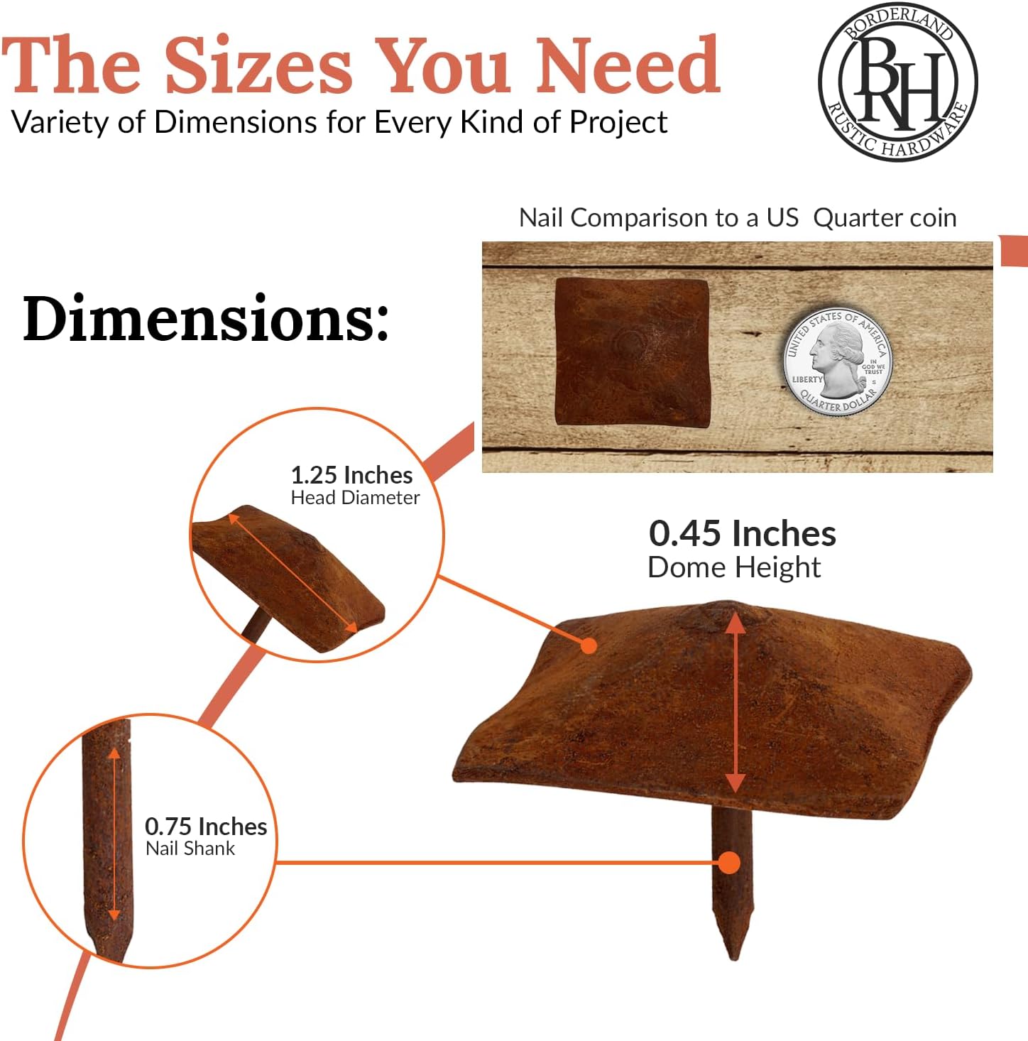 10 Pack 1.25" Square Head Iron Clavos Decorative Nails – Rusted – Handmade Rustic Square Fasteners for Farmhouse Shutters, Faux Wood Beams, Barn Doors, Shutters, and Gates – Ornamental Wood Accent