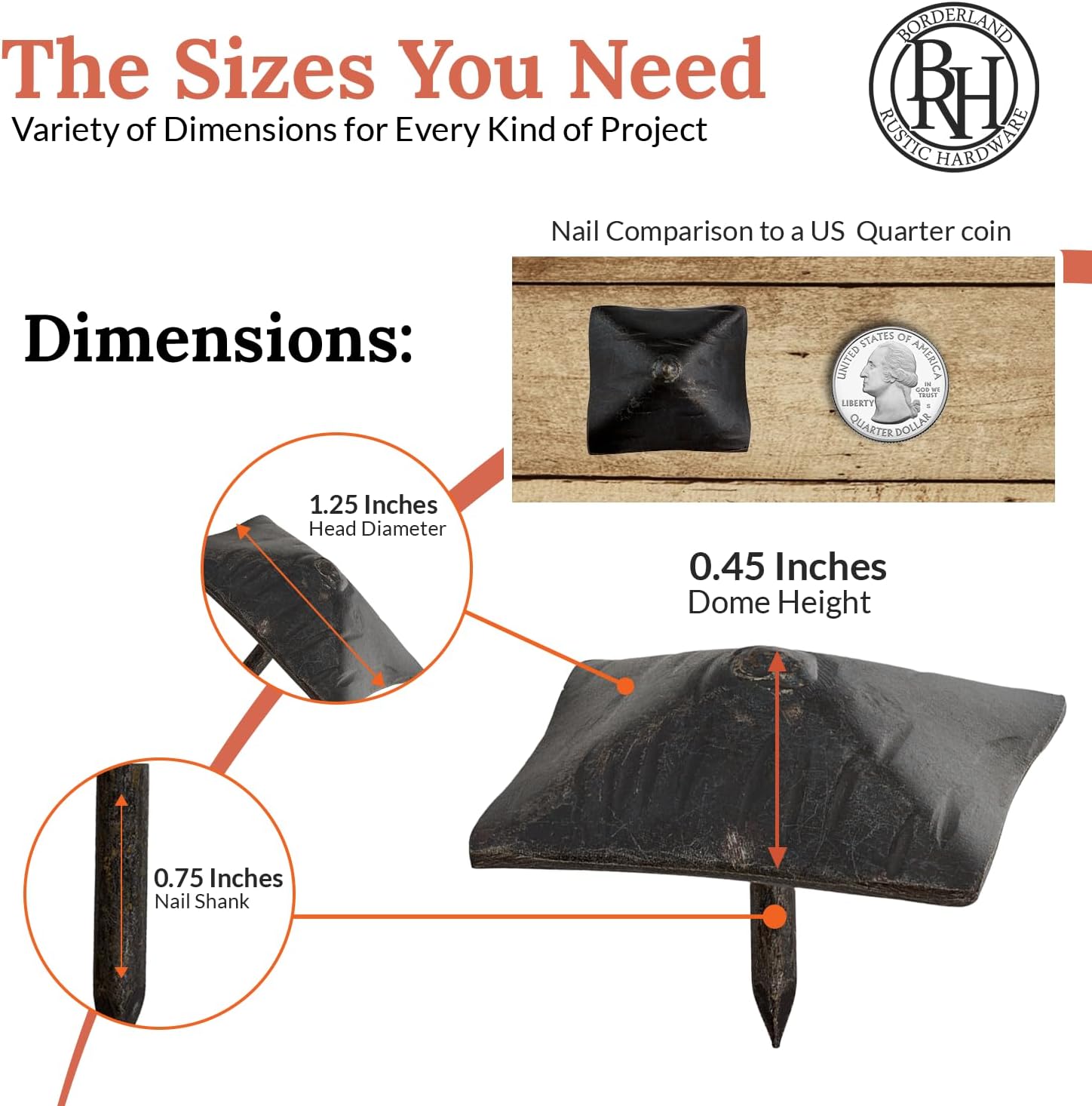 100 Pack 1.25" Square Head Iron Clavos Decorative Nails – Sealed Unfinished – Handmade Rustic Square Fasteners for Farmhouse Shutters, Faux Wood, Barn Doors, and Gates – Ornamental Wood Accent