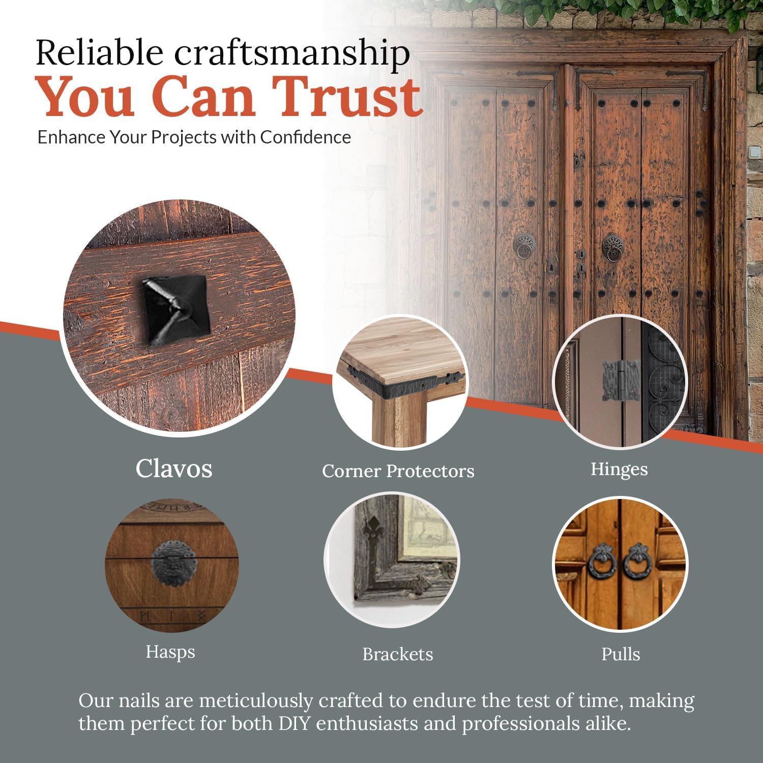 - IDEAL USES: These decorative hardware nails are perfect for a variety of applications, including barn door window shutters, exterior shutters, and faux wood beams. Ideal for upgrading wooden barn doors and farmhouse barn door hardware, they provide both functional and aesthetic enhancements to rustic and traditional projects.
