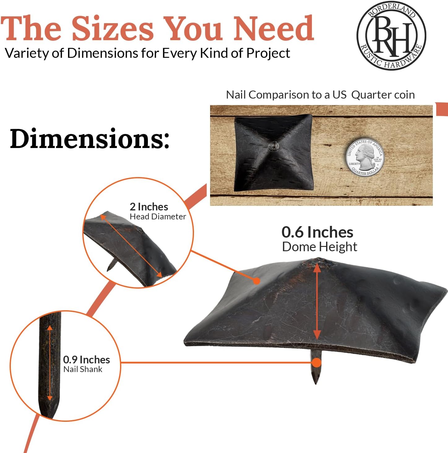 100 Pack 2" Square Head Iron Clavos Decorative Nails – Sealed Unfinished – Handmade Rustic Square Fasteners for Farmhouse Shutter, Barn Door, Shutters, and Gates – Ornamental Wood Accent