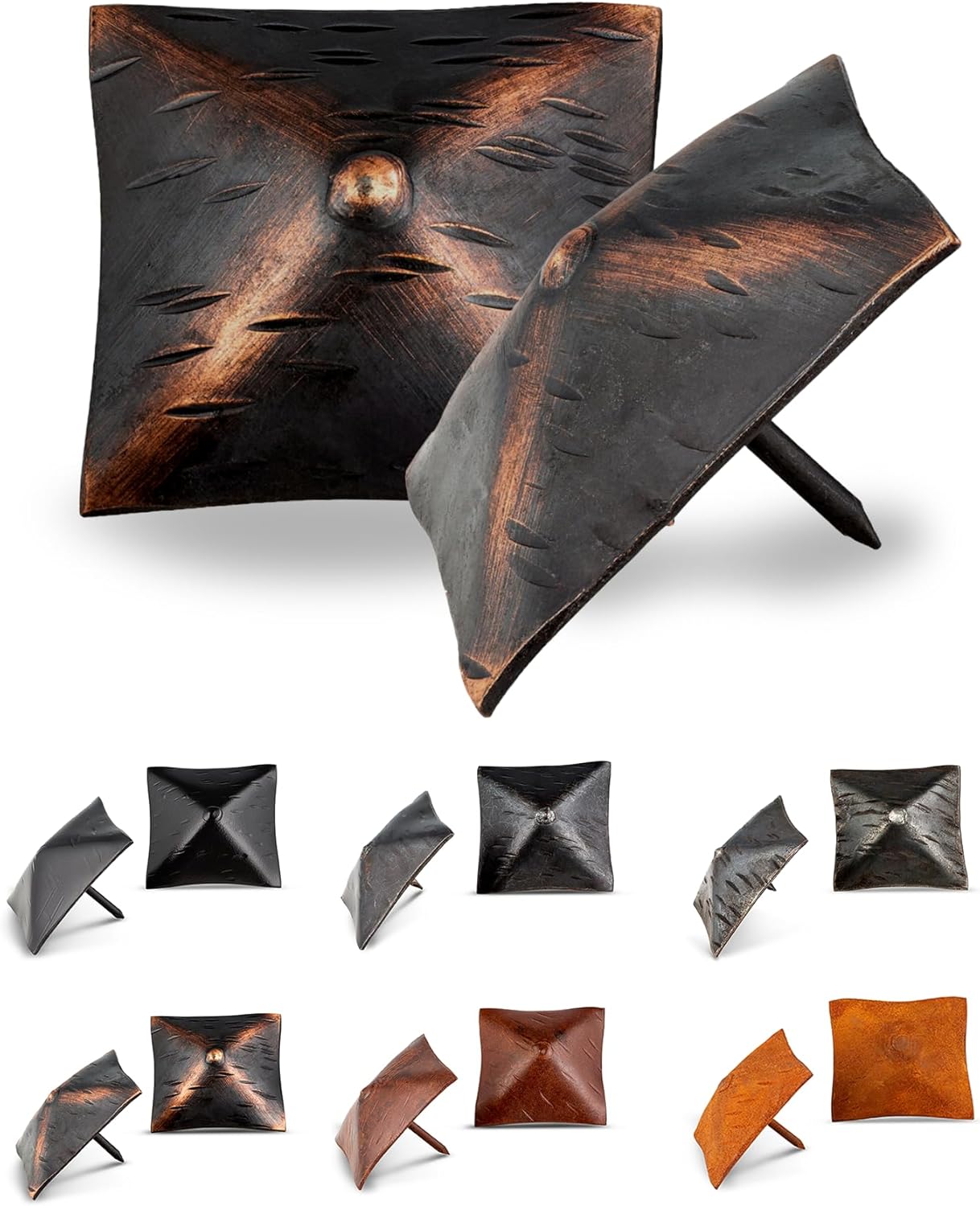 25 Pack 2" Square Head Iron Clavos Decorative Nails – Oil Rubbed Bronze – Handmade Rustic Square Fasteners for Farmhouse Shutters, Barn Doors, Shutters, and Gates – Ornamental Wood Accent