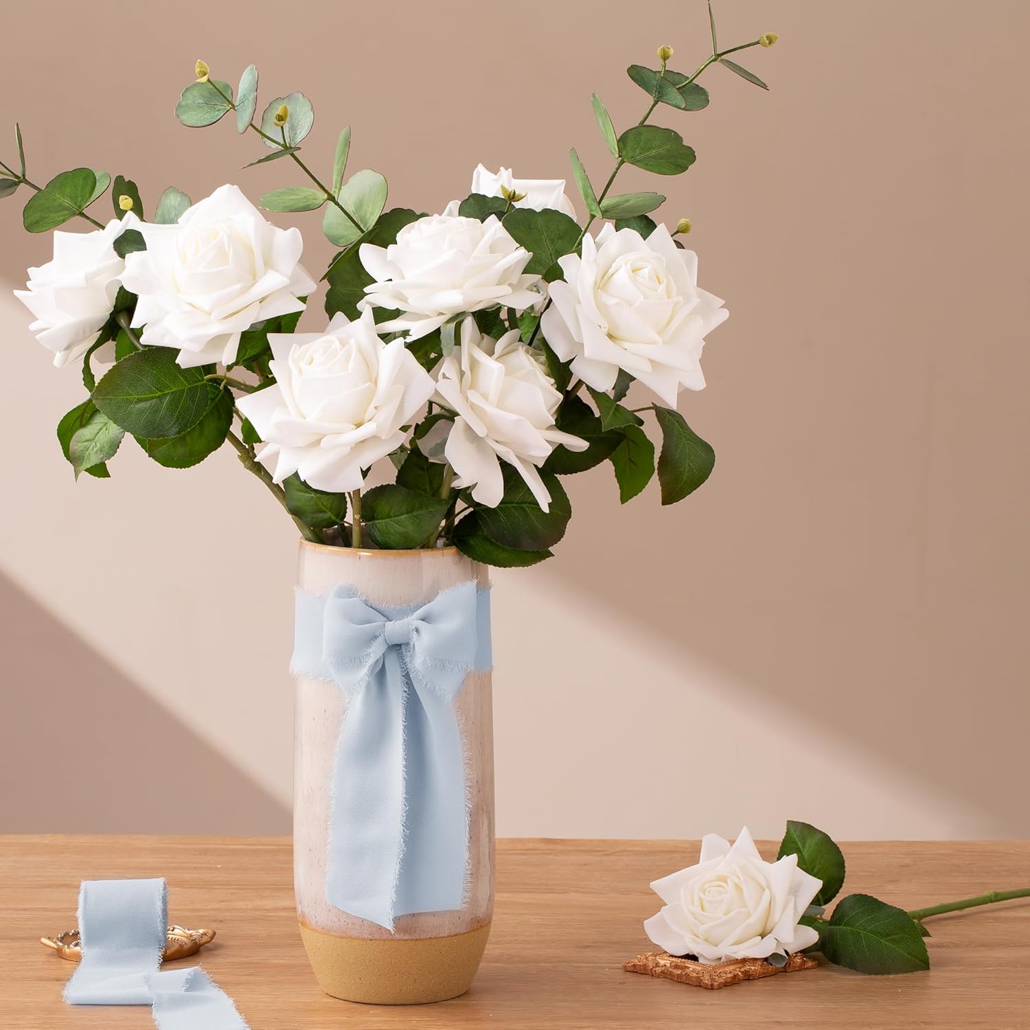 - 【Size and Color】Each roll of chiffon ribbon is 2 inches wide and 7 yards long, perfect for various creative uses such as making bows, decorating wreaths, and DIY crafts. This set includes 3 rolls baby blue ribbons. These vibrant frayed ribbons add a rustic charm to your creations, ideal for bouquet wrap or gift ribbon.