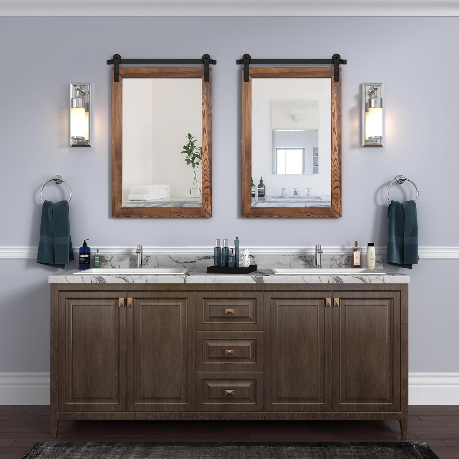 COGOOD Farmhouse Barn Door Mirror - 21 x 30 Rustic Wood Framed Wall Mirror for Bathroom, Living Room, Entryway Wall Decor (Brown)