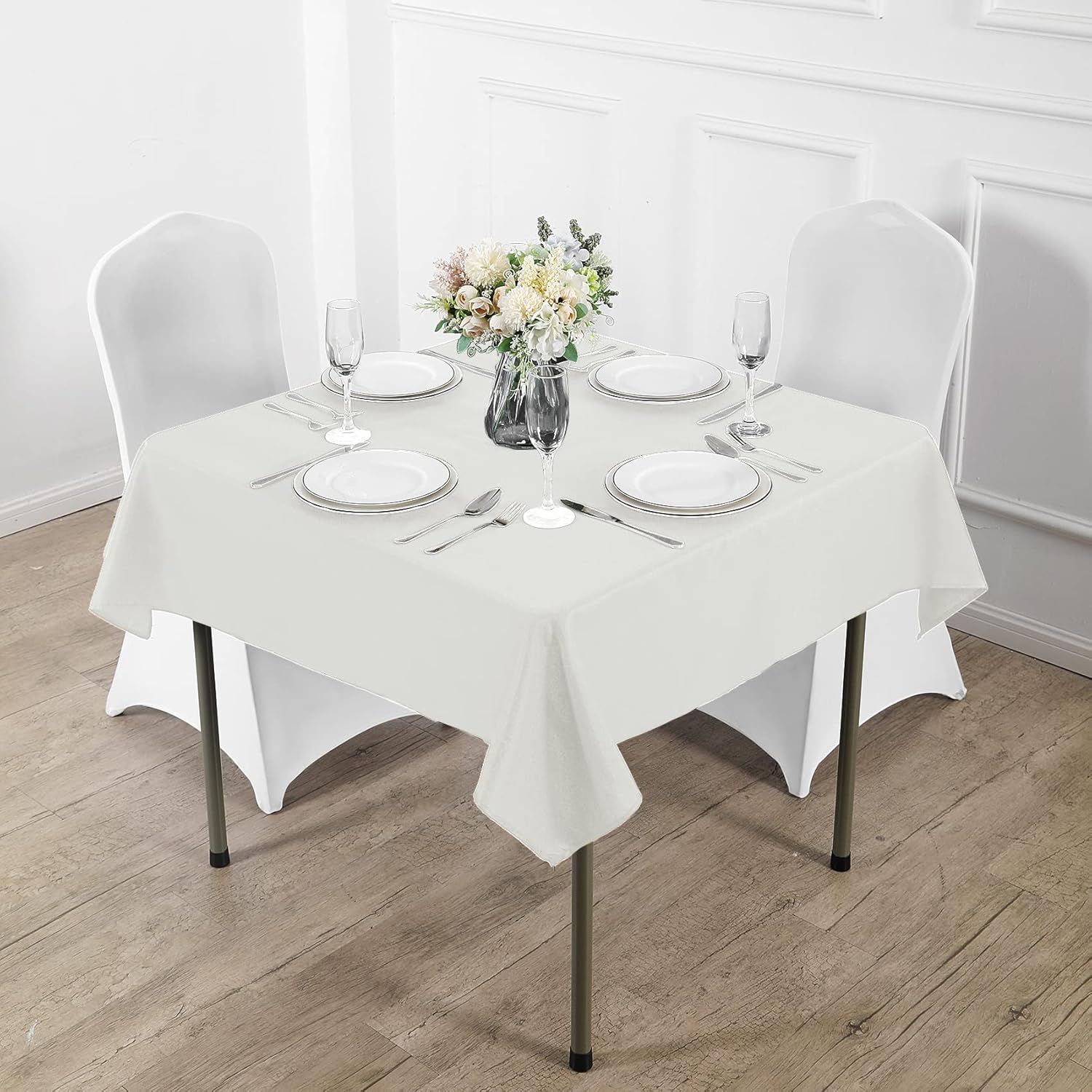 Fokitut 2 Pack Waterproof Square Tablecloth, 70x70 Inch, Stain Resistant and Wrinkle Polyester Table Cloth, Fabric Table Cover for Kitchen Dining, Wedding, Party, Holiday Dinner-Ivory