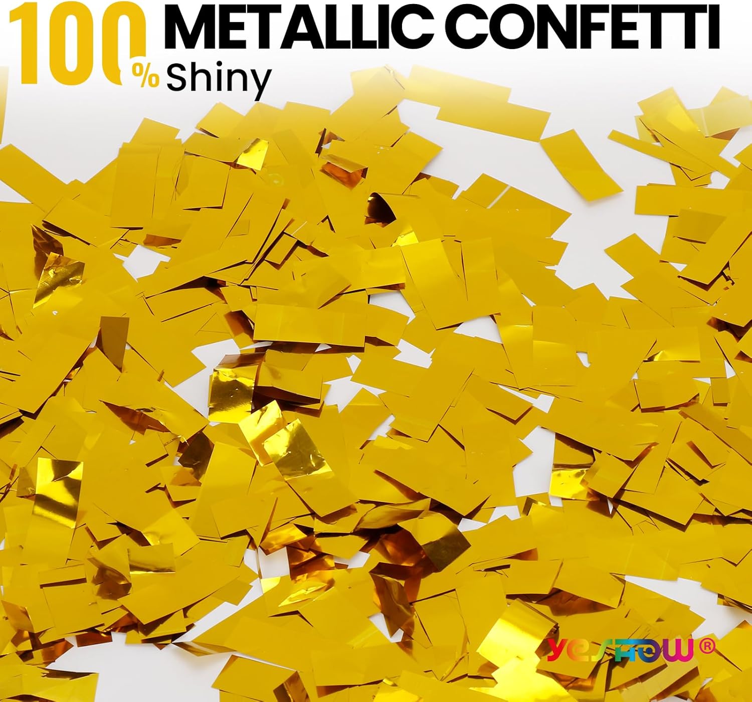 - đăTWICE THE CONFETTI, DOUBLE THE FUNă Our gold confetti cannon is loaded with 180 grams of gold confettiâtwice the amount of standard poppersâfor a truly spectacular display. Despite the extra confetti, it's lightweight and easy to handle, making it perfect for all ages and events