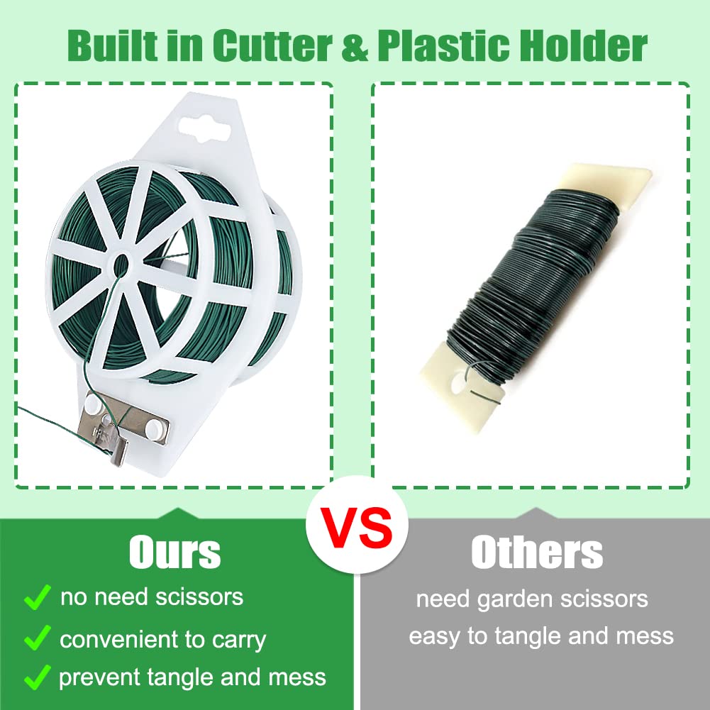 - 🌷Built-in Easy Cutter: No need garden scissor, a cutter built into the spool, easy to cut and make any size needed. Plastic fixed holder design makes our paddle wire no tangling and convenient to carry anywhere