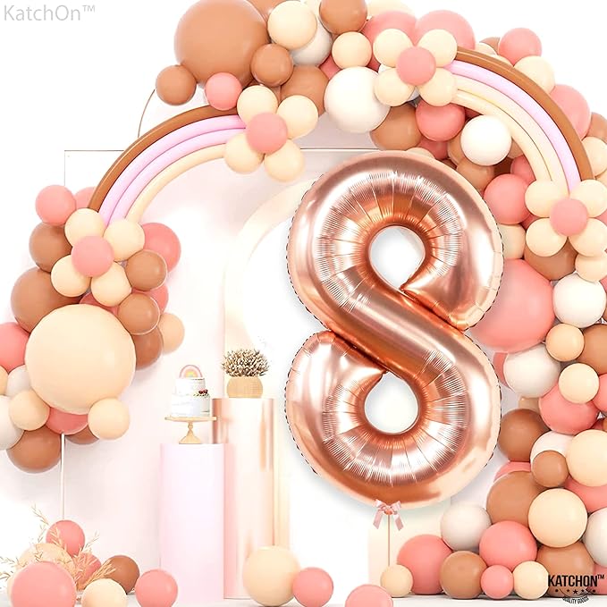 - PICTURE PERFECT BACKDROP AND PHOTO PROP: The Big 8 Birthday Decorations Girl will be a perfect 8th birthday party supplies for Girls. The 8 year old rose gold balloon can be used as a photo prop. use this happy 8th birthday banner for your photoshoot or anniversary. Light up the event with this Rose Gold Helium number 8 balloons for birthdays Decorations Supplies Kit. These 8 rose gold birthday decorations make your 8 year old boy,girl birthday decorations or anniversary more memorable,Powered by BRND.ME