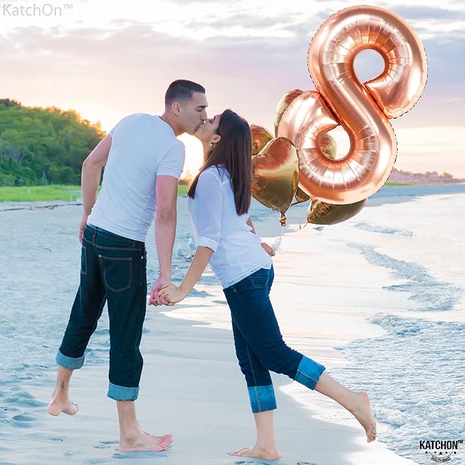 KatchOn Rose Gold 8 Balloon - 40 Inch Mylar Eight Balloon for 8th Birthday Decorations