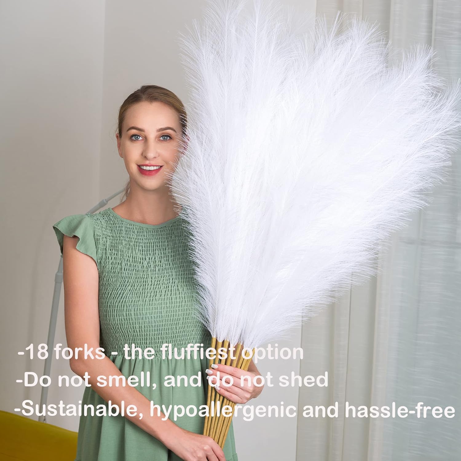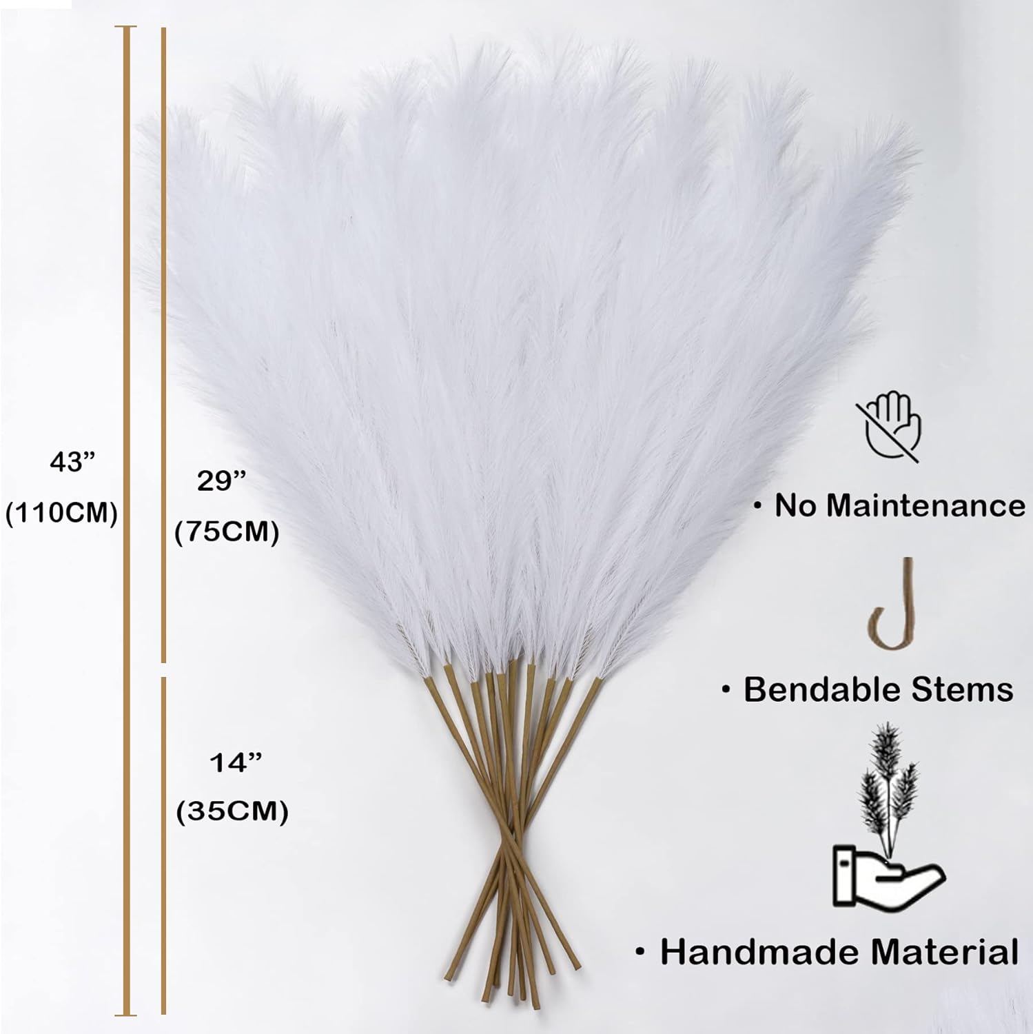 EVODIS Pampas Grass Decor Tall, 43"/110cm Faux Pampas Grass 6 Stems Large Pompass Grass Branches Tall Bulk Boho Flower Arrangement for Home Room Wedding Party Decor (White)