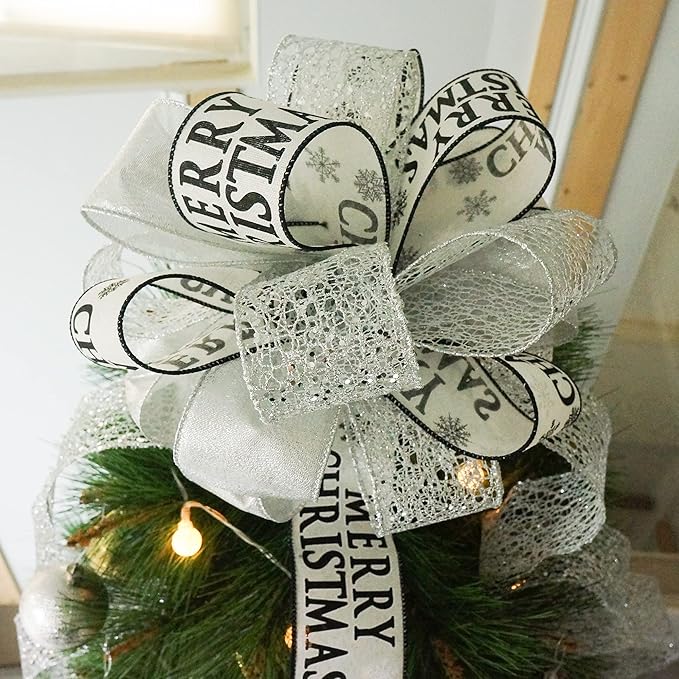 - UNFORGETTABLE MEMORIES WITH TREE TOPPER :- Create unforgettable memories with our fun 11" silver with black Christmas Christmas tree topper bow. As you gather around the beautifully adorned tree, the whimsical tree topper bow design becomes a focal point for cherished moments. evoking a sense of togetherness and joy.