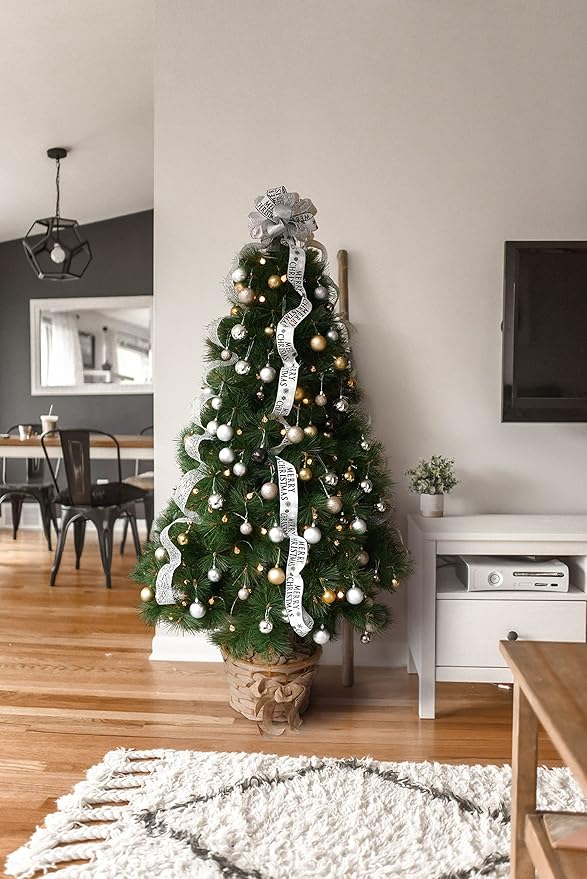 - EASY INSTALLATION:- Experience hassle-free decorating with our 11" silver with black Christmas Christmas tree toper with 4 streamer and 3 yards long each designed for easy installation that the bow comes with sturdy, clear plastic cone which is easy to place on the top of the tree, can be reused, are portable and store easily, saves you time and effort.