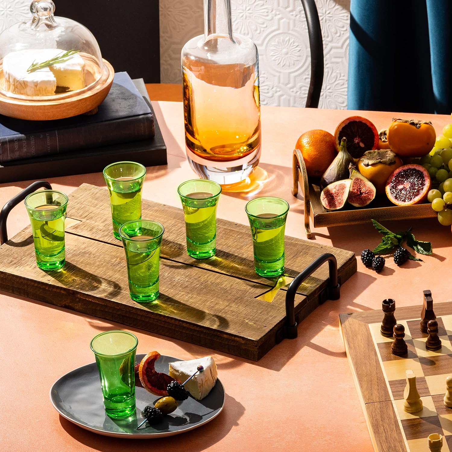 - Party with Color - Looking to stand out from the crowd, make a lasting first impression with M&N HOME's colored shot glasses. Match your party décor and add a burst of color with shot glasses that are beautiful and functional. Our classy but timeless shot glasses looks great on the shelf and feels sturdy in your hands. Entertain, Dine and Party with M&N HOME's elegant bar glasses.