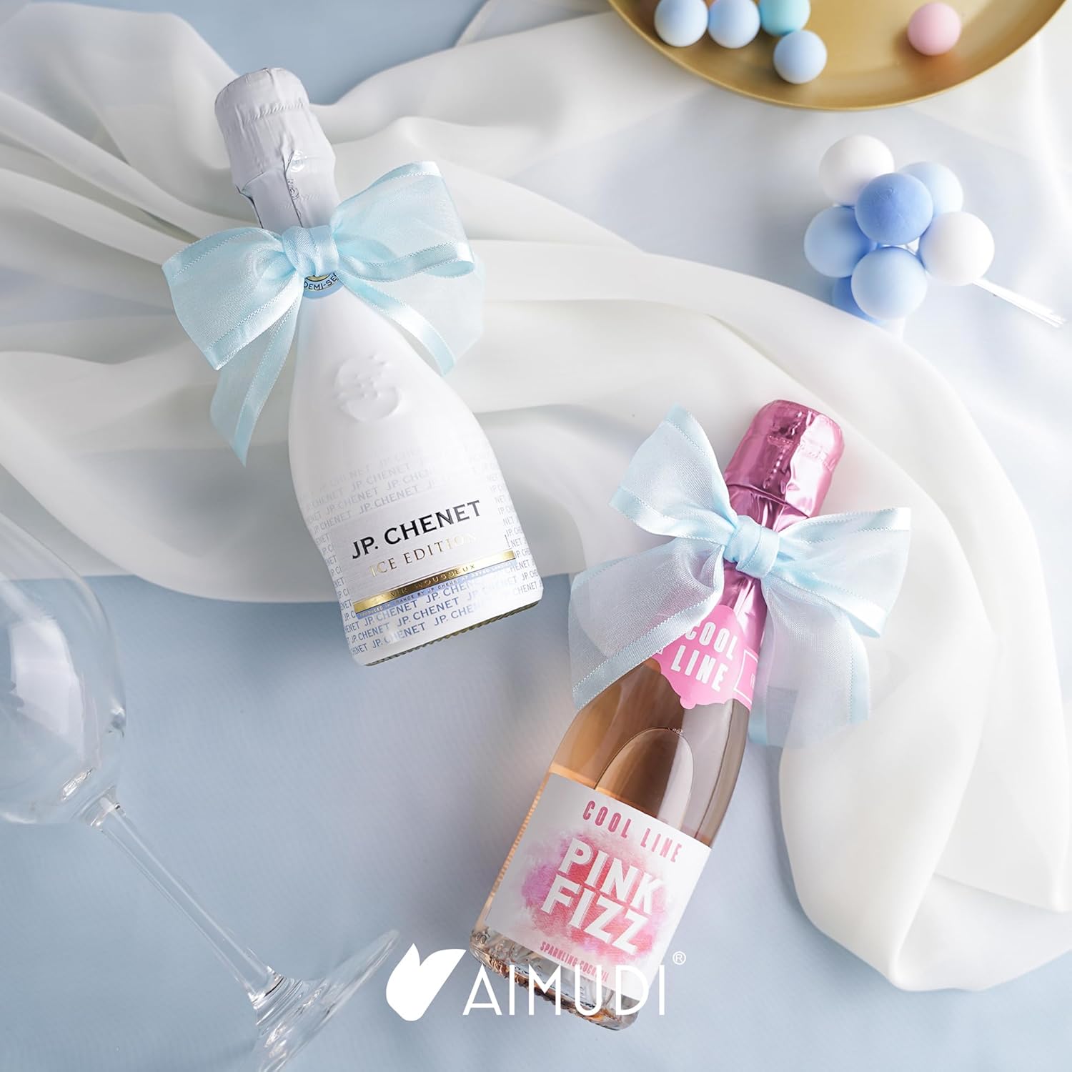 - PRETIED RIBBON BOWS- Decorative bows is made of 1-1/2'' baby blue organza satin edge ribbon with romantic transparency and glossy lustre, easily adding a elegant final touch to your party favor, cake pop bags, gift basket