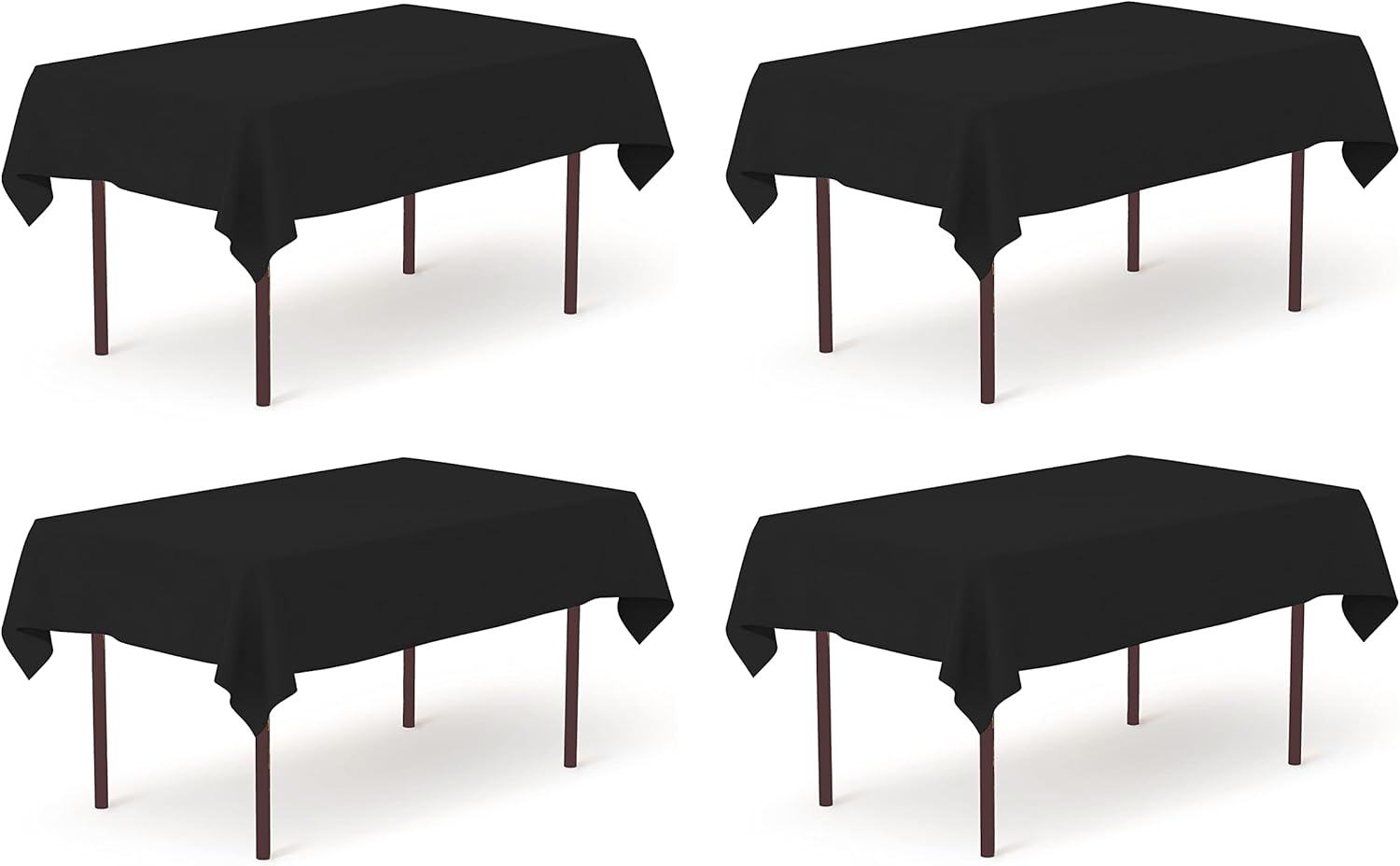 Pomp Black 60" x 84" Poplin Polyester Tablecloth (4 Pack) | Wrinkle + Stain Resistant Easy Care Premium Fabric | Fits 5FT Rectangle Table