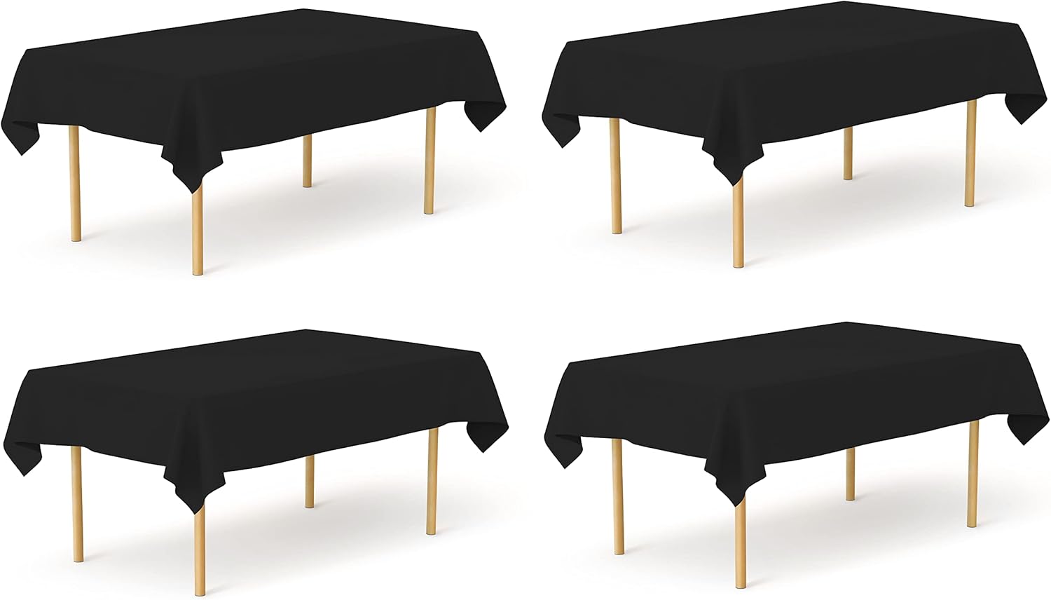 Pomp Black 60" x 126" Poplin Polyester Tablecloth (4 Pack) | Wrinkle + Stain Resistant Easy Care Premium Fabric | Fits 8FT Rectangle Table