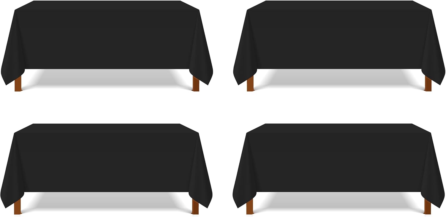 Pomp Black 90" x 156" Poplin Polyester Tablecloth (4 Pack) | Wrinkle + Stain Resistant Easy Care Premium Fabric | Fits 8FT Rectangle Table