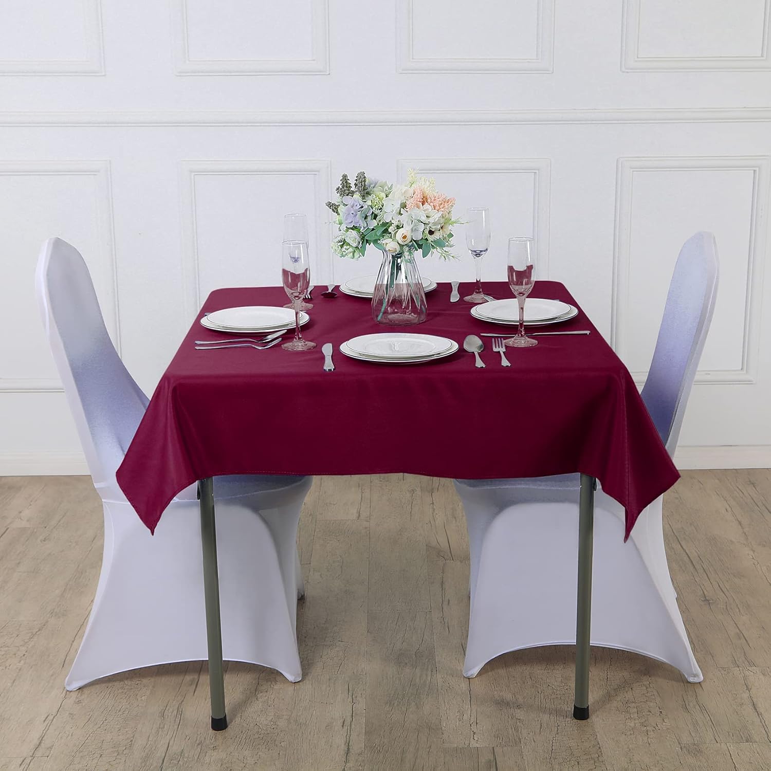 Cupuamon Square Tablecloth 90x90 inch Washable Polyester Fabric Table Cloth for Wedding Party Dining Banquet Decoration(90x90,Burgundy)