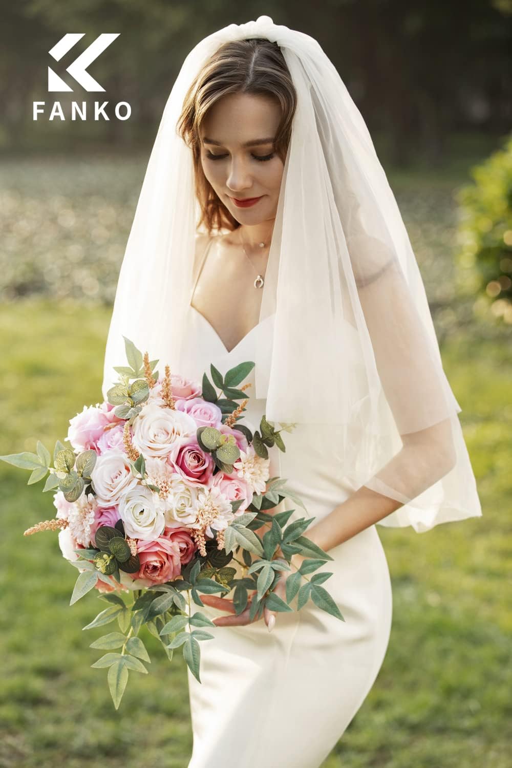 FANKO Rose Artificial Flowers Combo for DIY, Fake Pink Rose Artificial Silk Flowers with Greenery, Real Looking Artificial Faux Flowers for Wedding, Table Decoration, Centerpieces, Party, Home Décor