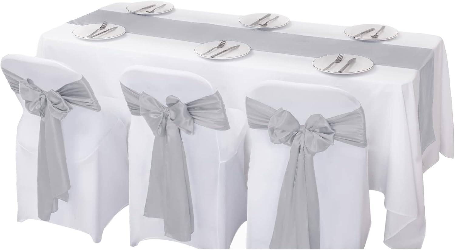 6Pack Table Runner 12 x 108 Inches Satin Silk Table Runner for Wedding, Birthday Party, Banquets, Graduations Decoration, fit Rectange and Round Table-Silver