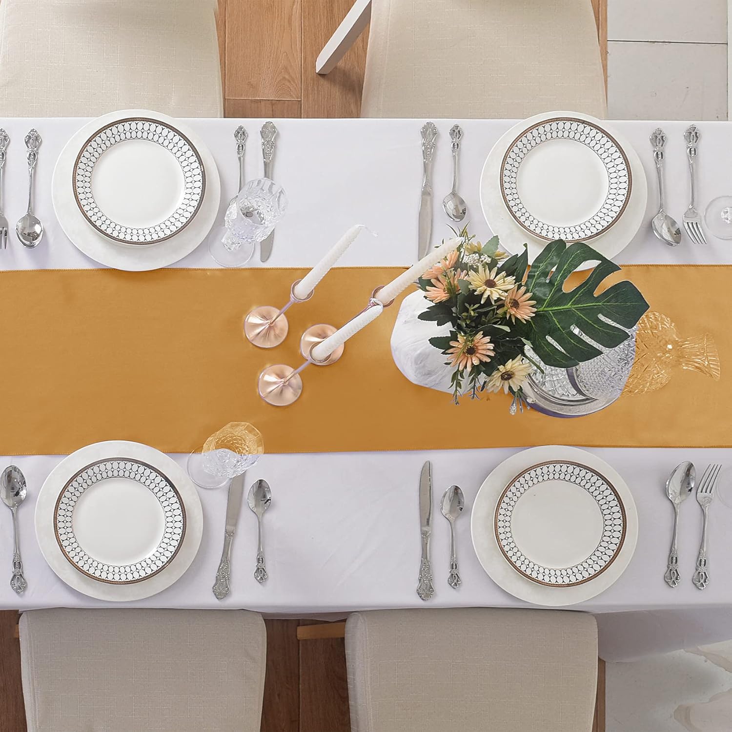 6Pack Table Runner 12 x 108 Inches Satin Silk Table Runner for Wedding, Birthday Party, Banquets, Graduations Decoration, fit Rectange and Round Table-Gold